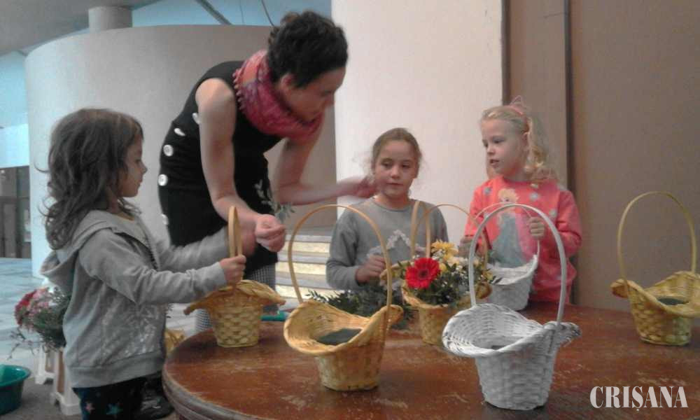„Copiii adoră florile, le îngrijesc, le tratează cu delicatețe, iar pe mine acest lucru mă interesează în primul rând. Le-am pus la dispoziție crizanteme albe și galbene, gerbere roșii și roz, trandafirași roz, Pistacia, dar și Floarea Miresei. Fiecare copil a realizat câte un aranjament floral, în coșuleț din nuiele împletit, pe care îl va putea duce acasă, făcând astfel o bucurie părinților, bunicilor sau pur și simplu să-și decoreze propria cameră”, ne-a declarat Sorina Wesolowski.