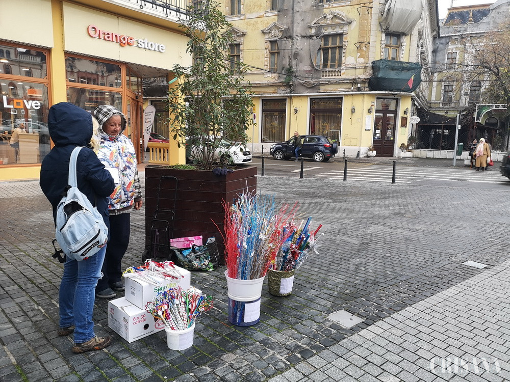 Doar doi comercianți au putut fi zăriți ieri pe Pietonală, vânzând nuielușe. Printre ei, s-a aflat și Maria, din Oradea, care confecționează bețe de Moș, de ani de zile, ajutată de fiica ei. „Eu și fiica mea le facem. De ani de zile ne ocupăm cu asta, dar nu se rentează. Lumea e tot mai săracă, de la an la an, sau poate nu se mai pune atât de mult accent pe tradiție”, spune femeia.