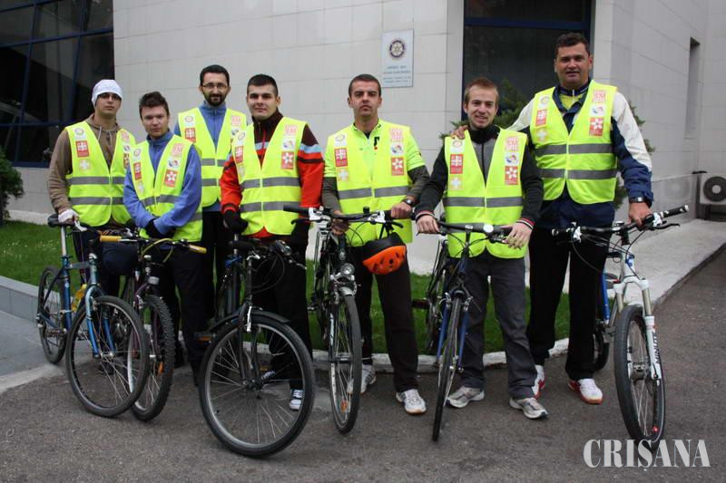 Inspiraţi de cursa ciclistă Rotary ce s-a desăfuşurat la Oradea, în luna iunie a acestui an, un grup de tineri studenţi ai Facultăţii de Kinetoterapie de la Universitatea Oradea împreunnă cu un profesor din cadrul Facultăţii de Educaţie Fizică şi Sport au pornit, ieri dimineaţă, din faţa Hotelului Continental, într-un tur ciclist pe ruta Oradea - Cluj-Napoca. Acţiunea lor are drept scop promovarea cauzei persoanelor afectate de scleroză multiplă.