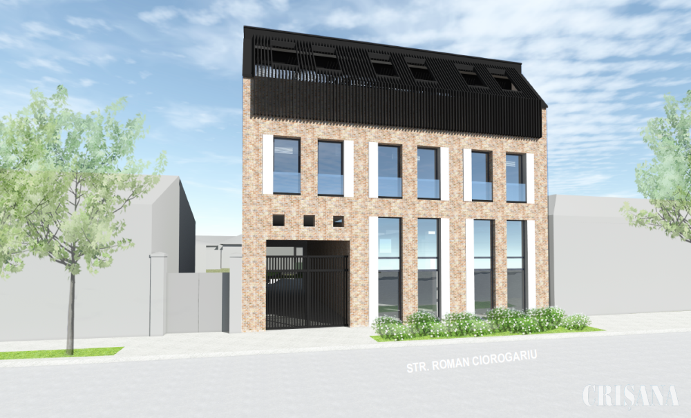Noua clădire va avea regim de înălțime P+E+Eretras și va fi amplasată pe aliniamentul străzii Roman Ciorogariu în front continuu închis.