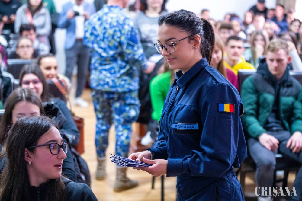 „Scopul pentru care ne-am prezentat, astăzi, la acest colegiu a fost acela de a le prezenta tinerilor oferta educațională a instituțiilor de învățământ din Forțele Aeriene Române, adică a Academiei Forțelor Aeriene „Henri Coandă” din Brașov și a Școlii Militare de Maiștri Militari și Subofițeri „Traian Vuia” din Boboc. Consider că orice meserie este importantă, dar acestea sunt unele nobile, pentru care îți trebuie anumite aptitudini și calități pe care le dezvoltăm în instituțiile noastre de învățământ. În urma cursurilor și a programelor de pregătire, studenții și elevii noștri vor ajunge să stăpânească atât avioanele, rachetele, cât și radarele din dotarea Forțelor Aeriene Române. Viața de militar este, în general, una strictă, un pic diferită de cea a civililor din societatea noastră, dar e o viață plină de oportunități, e o viață frumoasă, o viață pe care mulți tineri nu au încercat-o și de asta am venit aici, să le arătăm care sunt oportunitățile, beneficiile și facilitățile unei cariere militare”, ne-a declarat comandor Cristian Manolachi, șeful Oficiului Personal și Mobilizare din cadrul Statului Major al Forțelor Aeriene Române.