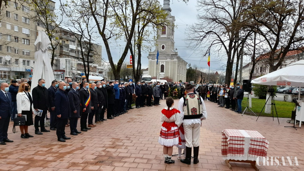 Festivitatea de luni, 19 aprilie, s-a desfășurat pe platoul din fața Monumentului Martirilor Bihorului Ioan Ciordaș și Nicolae Bolcaș și a început, firește, cu intonarea Imnului național, după care profesorul de istorie Dan Ispas a evocat un aspect mai puțin abordat al evenimentelor din urmă cu mai bine de un secol, și anume colaborarea dintre locuitorii urbei, indiferent de apartenența lor etnică sau religioasă. Vorbitorul a subliniat rolul pe care organele locale – cele două consilii naționale, român și maghiar, precum și Garda Națională română – l-au avut în menținerea unui climat cât mai aproape de normalitate într-o perioadă atât de frământată.