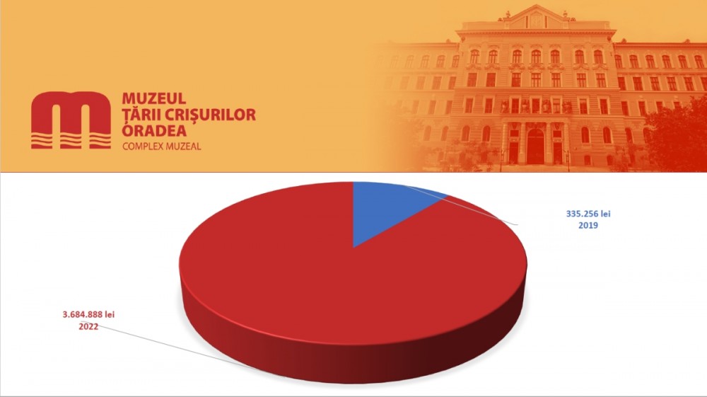 Totalul veniturilor Muzeului Ţării Crişurilor - Complex Muzeal au fost anul trecut de 22.328.431 de lei, comparativ cu 11.869.557 lei în 2019, rezultând o creștere a veniturilor cu 88%. Totalul veniturilor proprii, dacă în 2019 erau de 335.256 lei, în 2022 au ajuns la 3.684.888 de lei, o creştere de 999%.