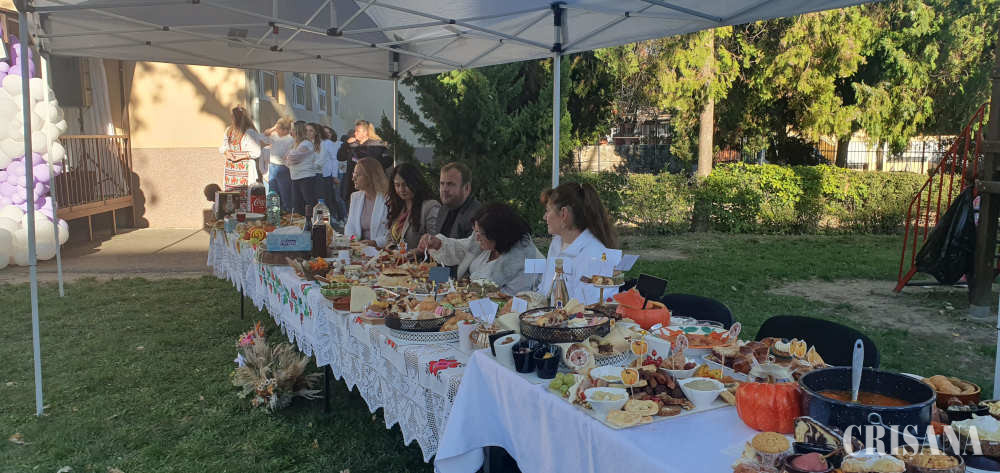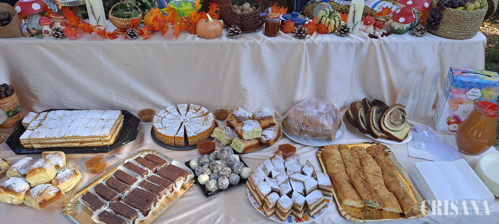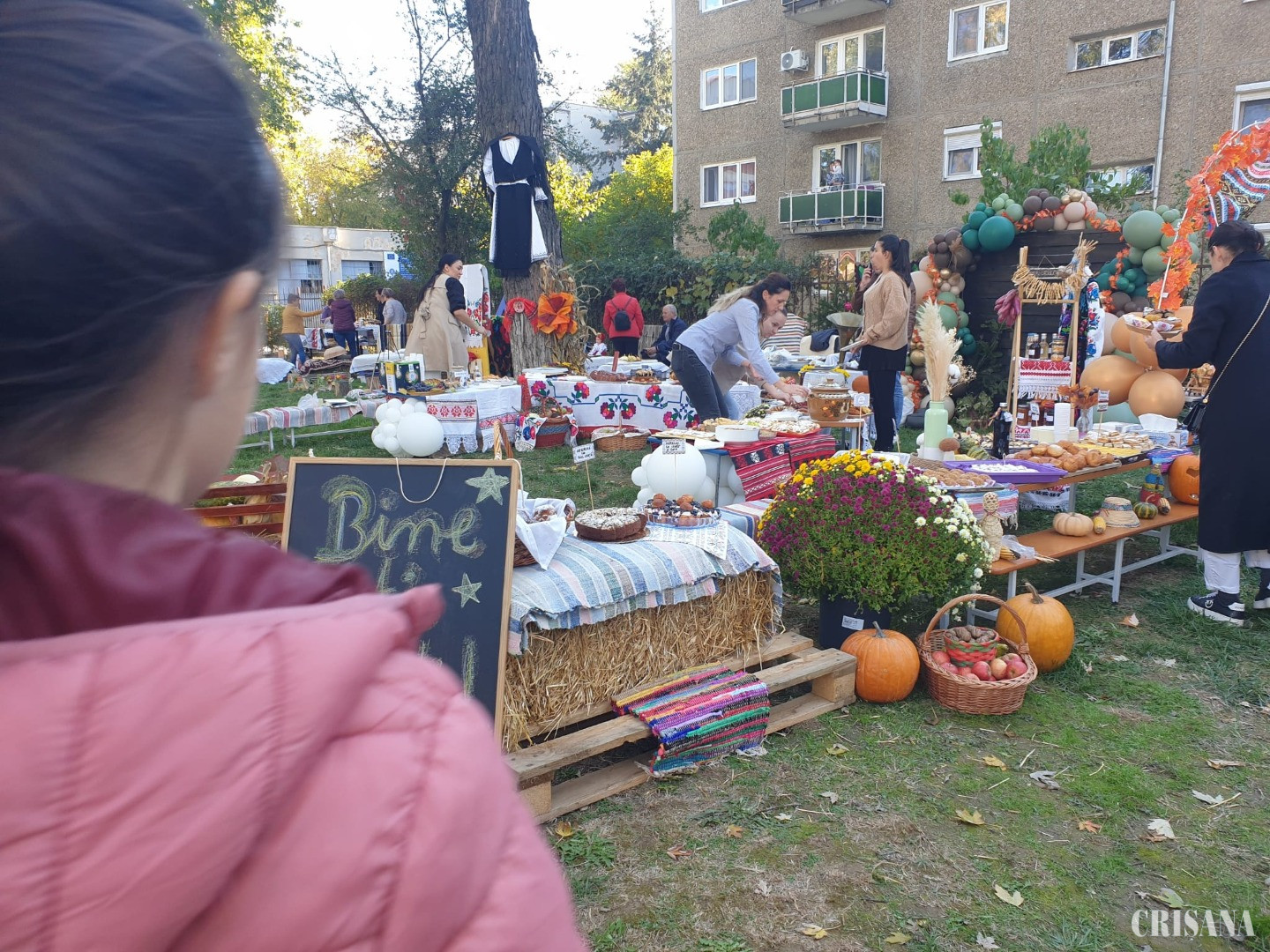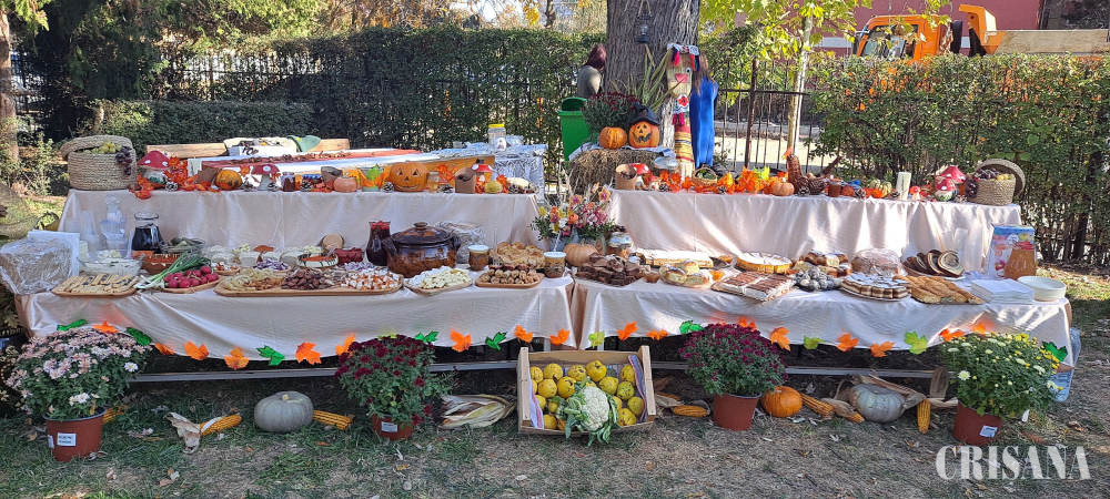 Fiecare grupă a grădiniței a avut un stand amenajat, preponderent din baloți de paie îmbrăcat cu straiele bunicilor de odinioară, împodobit cu crizanteme și știuleți de porumb, străjuiți de manechini îmbrăcați în costume populare. Dovleci sculptați sau colorați, aranjamente florale, unul mai deosebit decât celălalt, au împodobit curtea grădiniței. Fiecare grupă și-a amenajat propriul stand. Mâncarea a fost din belșug, de la diferitele platouri țărănești la dovleac copt, sarmale, plăcinte, bogracs făcut la ceaun, diferite salate, zacuscă și chiar pâine cu untură și ceapă. Spre bucuria celor mici, prăjiturile și dulciurile au fost prezente într-o paletă impresionantă, printre care putem aminti gogoșile, brioșele, brânzoaicele, prăjitura cu mere, torturi și multe, multe alte bunătăți. Cadrele didactice au avut în acest an o ținută în culorile alb și albastru, acestea intrând împreună în curtea grădiniței, cântând, spre bucuria și surprinderea tuturor, un cântecel. După ce au fost îndelung aplaudate de către public, părinții arătându-și și pe această cale aprecierea față de acestea, fiecare cadru didactic s-a îndreptat spre standul propriu. În acest an a fost organizat și un concurs cu jurizare, urmând a fi premiate cele mai gustoase bucate. Atmosfera a fost întreținută de muzică populară cu interpreți locali, care i-au făcut pe participanți să întindă hora în curtea grădiniței. Bineînțeles că și la această ediție a avut loc o strângere de fonduri în scop caritabil, de această dată, pentru un băiețel de 5 ani, înscris la Allegria, care la vârsta de 2 ani a fost diagnosticat cu o formă severă de autism, părinții acestuia dorind să îl ducă la Viena pentru transplant de celule Stem, un tratament costisitor care ar putea ameliora simptomele autismului, îmbunătățind funcțiile cognitive și comportamentale ale copilului. În acest sens, a fost pusă la fiecare stand câte o cutie pentru strângerea donațiilor, banii revenindu-i acestui băiețel, contribuind astfel cu o parte din suma necesară pentru terapia de care are mare nevoie. Suma strânsă a fost în valoare de 21.832 lei, iar pentru cei care vor să îl ajute pe micuț, pot face donații în contul RO68CECEB00008RON0928549, titular cont, Fekete Norbert.