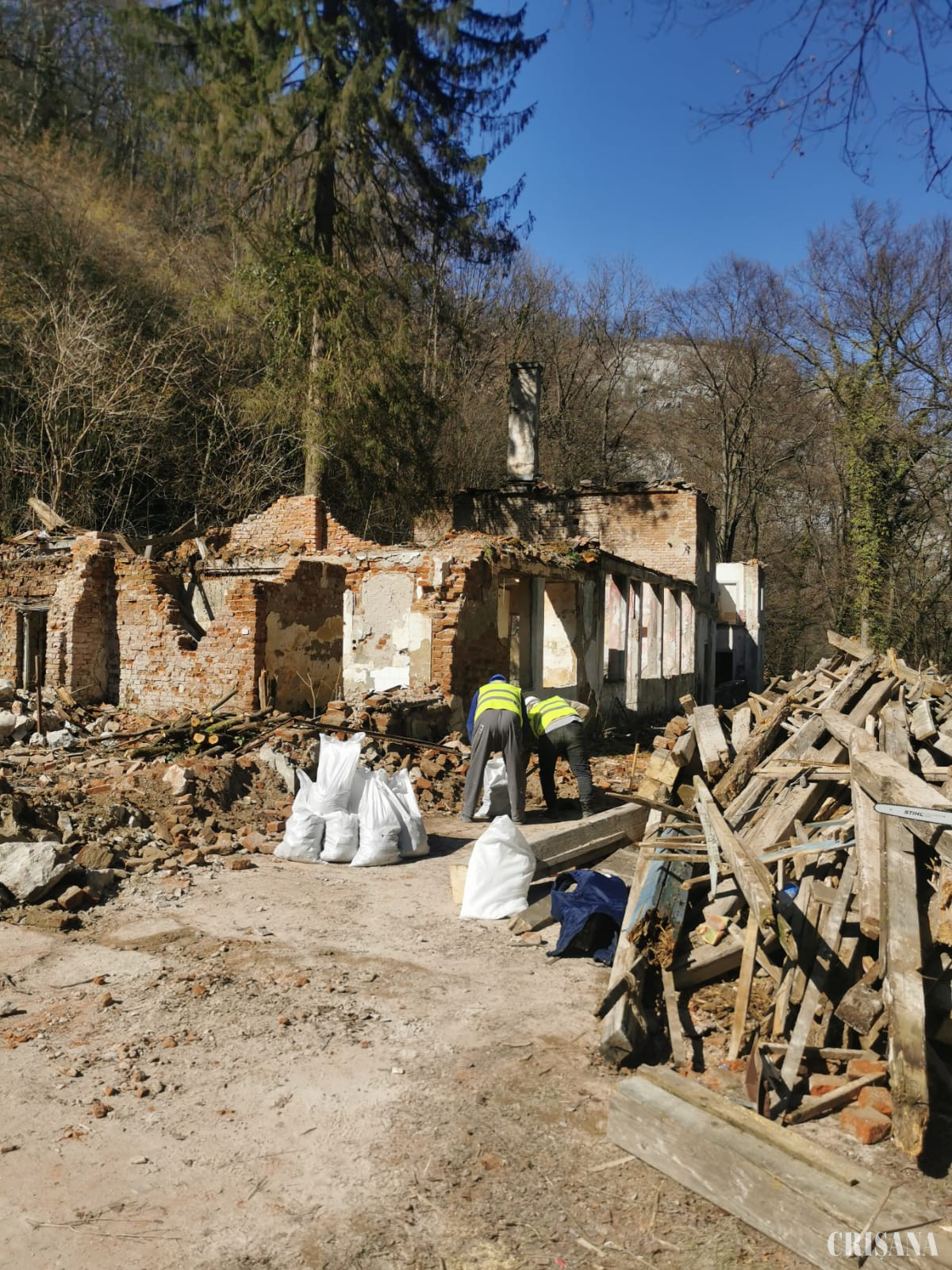 În paralel se fac lucrări de punere în siguranță a clădirii, pentru a nu fi un pericol pentru turiștii care vizitează zona. Lucrările constă în demolarea acelor părți din clădire care s-ar fi desprins din cauza stadiului avansat de degradare și se evacuează molozul rezultat în urma demolărilor. Totodată, se pregătește șantierul pentru începerea lucrărilor de reconstruire a cabanei.