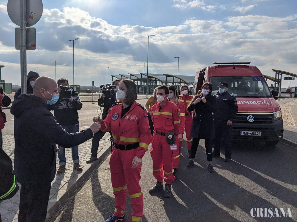 Delegația, care a fost condusă de medicul orădean Alin Suciu (medic specialist în Medicină de Urgență și rezident în anul V la Pneumologie) a fost întâmpinată în Vama Borș II atât de prefectul județului Bihor, Dumitru Țiplea cât și de Inspectorul șef al ISU BH, colpnelul Caba Sorin Mihai. „Mă bucur să vă văd întorşi acasă, mă bucur că sunteţi sănătoşi! Alături de Guvernul României vă mulţumesc pentru tot efortul pe care l-aţi făcut”, a spus prefectul.