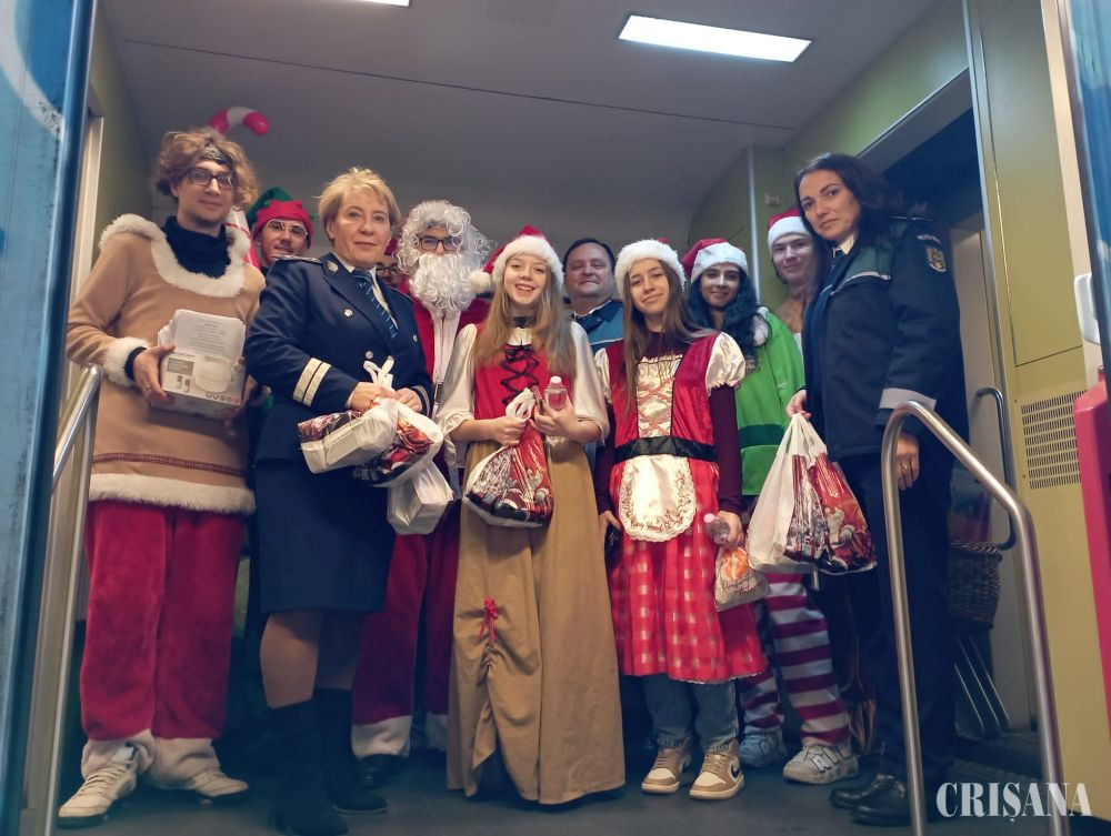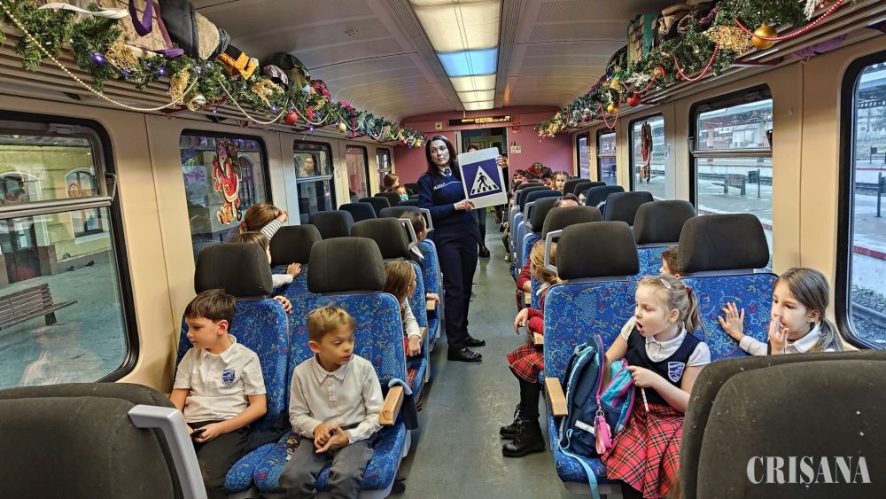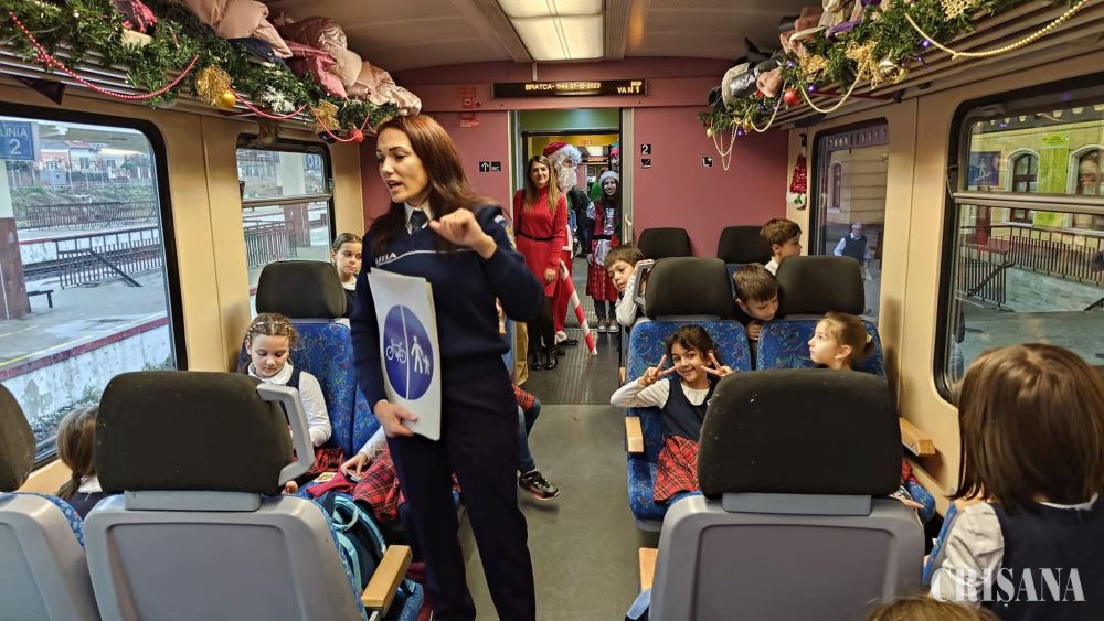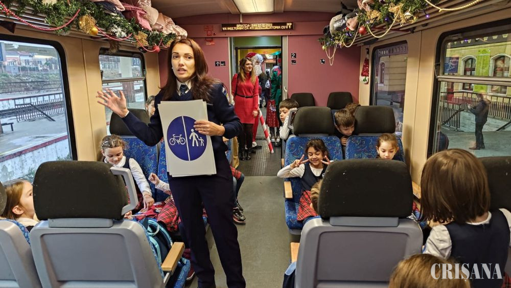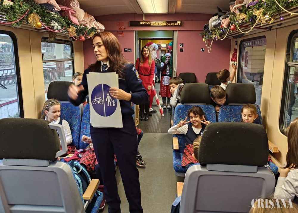 Copiii care au urcat în trenul lui Moș Crăciun, joi, 7 decembrie, au avut parte de mai multe surprize. Polițiștii de prevenire bihoreni i-au învățat cum să aibă o vacanță de iarnă în siguranță.