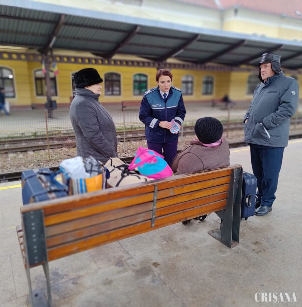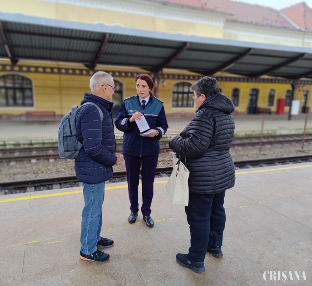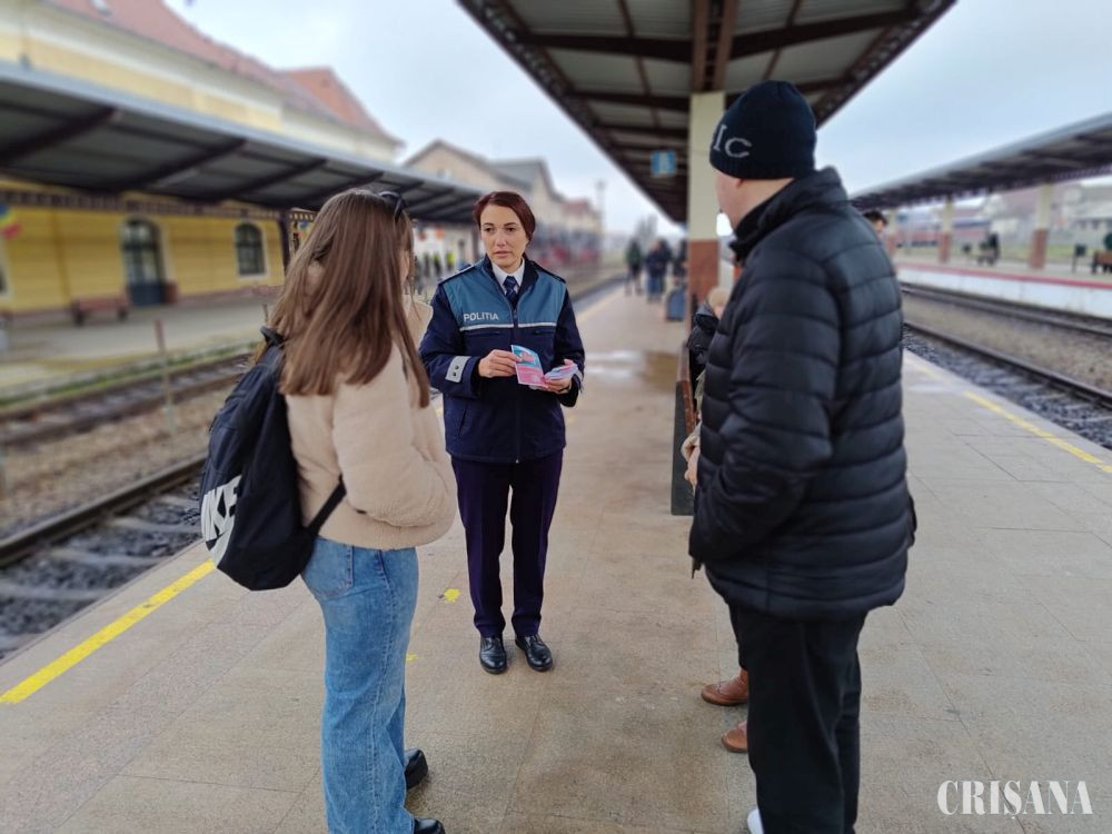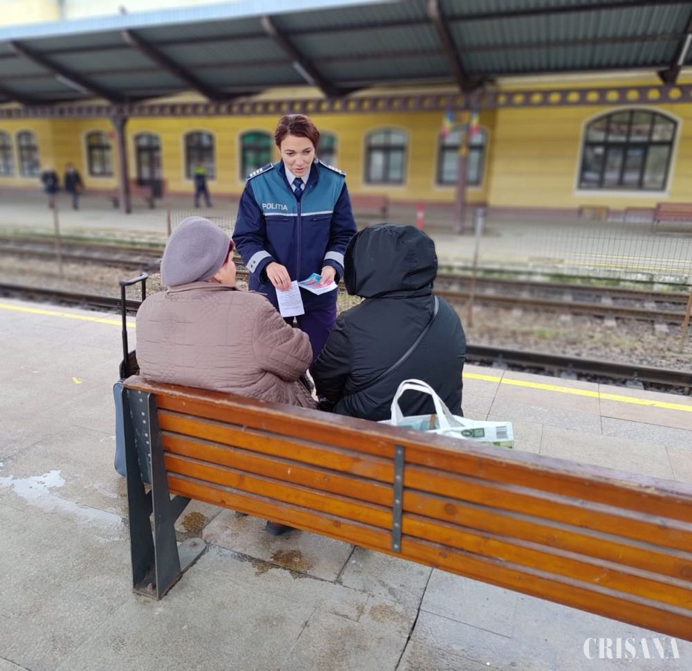 Totodată, polițiștii au interacționat cu cetățenii prezenți pe peronul stației CFR Oradea, dar și cu cei care călătoreau cu trenul și le-au reamintit cum să se protejeze pentru a nu cădea victime infracțiunilor de furt din poșete, din bagaje sau din buzunare. De asemenea, au fost oferite recomandări pentru prevenirea victimizării prin infracțiuni de înșelăciune sau prin intermediul fraudelor online.