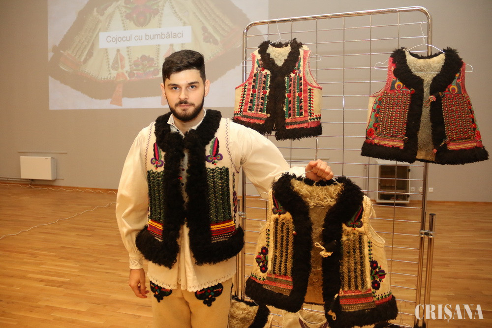 Muzeul Țării Crișurilor, Universitatea din Oradea - Facultatea de Arte și Muzeul Municipal Beiuș au organizat un eveniment inedit, joi seara, la sediul MTC. Vedeta seratei a fost cojocul cu bumbălaci, o piesă etnografică rară care a fost prezentată de dr. Simona Ioana Bala.