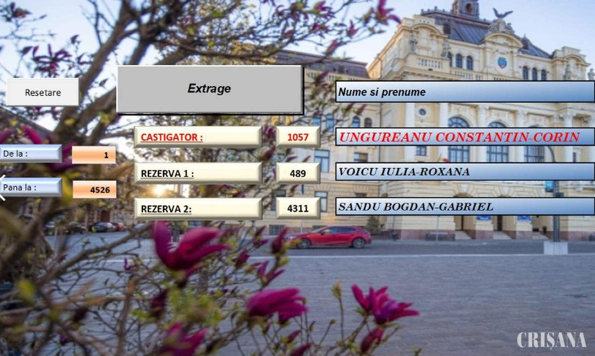 La această extragere au fost înscriși 4.526 de contribuabili care și-au plătit online impozitele datorate pentru anul în curs, în perioada 2– 8 martie. Extragerea computerizată l-a desemnat câștigător pe Ungureanu Constantin Corin, domiciliat pe strada Dragoș Vodă. Conform regulamentului campaniei, au fost extrase și două rezerve, care vor putea beneficia de premiu în situația în care câștigătoarea nu îl revendică în termenul prevăzut.