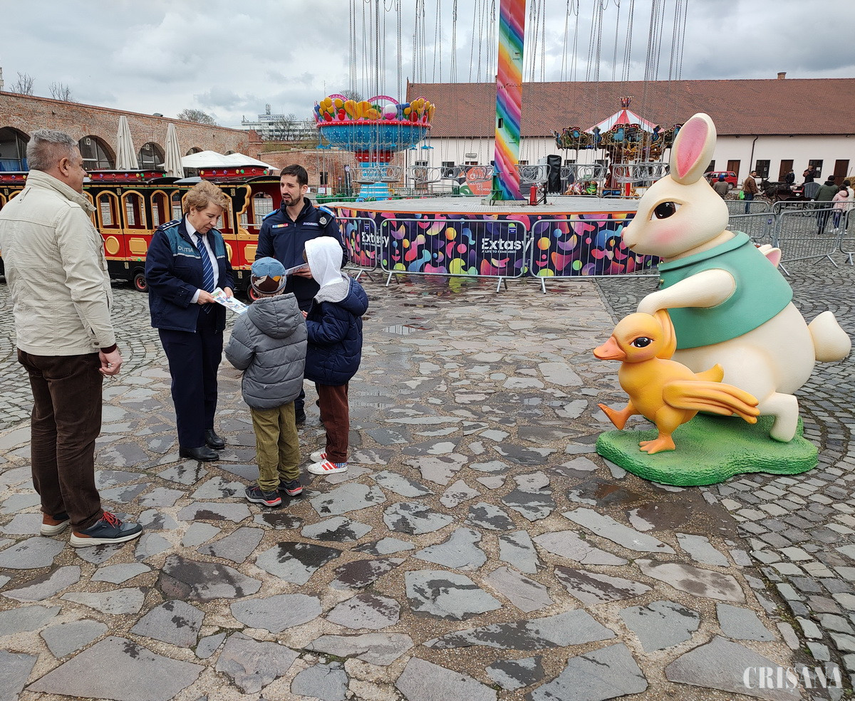 În acest context, polițiștii de prevenire bihoreni au interacționat cu vizitatorii de la Târgul de Paști din Cetatea Oradea, au fost prezenți în Orășelul Copiilor din municipiul Oradea, dar și pe peronul Stației CFR Oradea, oferind celor mici și celor mari recomandări importante pentru siguranța acestora. De asemenea, polițiștii de prevenire bihoreni au fost prezenți în marile centre comerciale din municipiul Oradea, în stațiile mijloacelor de transport în comun, în parcuri și în toate centrele multifuncționale pentru persoane de vârsta a treia din Oradea. În cadrul interacțiunii cu cetățenii, polițiștii de prevenire bihoreni le-au reamintit cum să se protejeze pentru a nu cădea victime infracțiunilor de furt din locuințe, din buzunare, tâlhăriilor sau infracțiunilor de înșelăciune. Polițiștii au subliniat care sunt vulnerabilitățile exploatate de hoți sau de escroci și cum pot fi prevenite furturile și înșelăciunile, respectând câteva măsuri de autoprotecție simple, dar foarte eficiente.