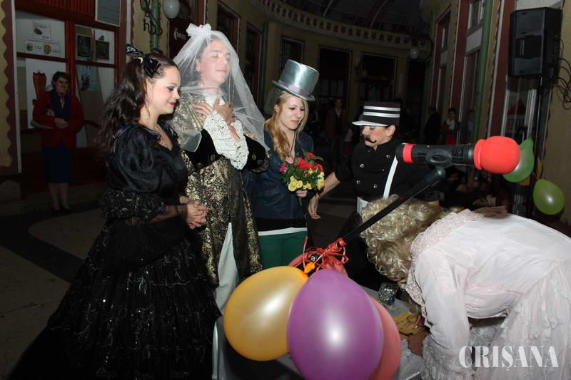 Aseară, în cadrul Festivalului de Teatru Scurt, orădenii au putut să se căsătorească rapid, alţii să-şi separe destinele la fel de rapid, maestru de ceremonii fiind actorul Richard Balint, de la trupa "Iosif Vulcan", iar naşii sau martorii, după caz, îndrăgitele actriţe Adela Lazăr şi Lucia Rogoz.