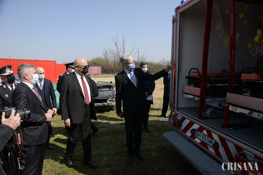 La Centrul Regional de Pregătire Integrată pentru Intervenții în Situații de Urgență al Inspectoratului pentru Situații de Urgență „Crișana” al județului Bihor (ISU Bihor), în prezența reprezentanților conducerii Ministerului Afacerilor Interne și unităților subordonate, a avut loc, vineri, 28 martie, prezentarea rezultatelor obținute în urma desfășurării proiectului CROSSRISKS, al cărui obiectiv vizează îmbunătățirea prevenirii riscurilor și managementului dezastrelor la nivelul Euroregiunii Bihor-Hajdu Bihar. La activitate au participat Lucian Bode, ministrul Afacerilor Interne, dr. Raed Arafat, secretar de stat în Ministerul Afacerilor Interne şi şef al Departamentului pentru Situaţii de Urgenţă, general-maior Dan-Paul Iamandi, Inspectorul General al Inspectoratului General pentru Situații de Urgență, Dumitru Țiplea, prefectul județului Bihor, dr. Hadrian Borcea, șeful UPU-SMURD Bihor, colonel Caba Sorin Mihai, inspectorul Șef al ISU Bihor, șefii structurilor MAI de la nivel național și teritorial și, în sistem de videoconferință, general de brigadă Kovacs Ferec, directorul Directoratului pentru Apărare împotriva Catastrofelor al județului Hajdu Bihar, și Ciprian Barna, manager de proiect. După expunerea, de către organizatorii evenimentului, a obiectivelor, etapelor derulării proiectului și a rezultatelor obținute, reprezentanții Ministerului Afacerilor Interne și oficialitățile locale au vizitat Centrul Regional de Pregătire și au asistat la antrenamentele pompierilor bihoreni, executate în containerele de pregătire achiziționate în cadrul proiectului. Referindu-se la concretizarea obiectivelor proiectului în realizarea Centrului Regional de Pregătire Integrată pentru Intervenții în Situații de Urgență, ministrul Afacerilor Interne, Lucian Bode, a declarat: „Sunt foarte bucuros să fiu alături de dumneavoastră, la inaugurarea acestui centru, un centru transfrontalier pentru pregătirea pompierilor. Acest lucru nu era posibil fără implicarea unor oameni sufletiști, implicarea unor oameni dedicați misiunilor de salvare. Acest proiect este o unitate etalon și un proiect pilot, care va deschide calea pentru noi proiecte similare la nivel național. Îi felicit pe toți cei care s-au implicat în acest proiect. Voi fi un susținător al inițiativelor care conduc la asigurarea unui nivel ridicat de pregătire a personalului implicat în gestionarea situațiilor de risc și a dezastrelor. În această meserie, poate cel mai important lucru dincolo de a fi dedicat, este, în opinia mea, pregătirea continuă. Acest lucru îl vedem astăzi, aici, în județul Bihor”. La finalul evenimentului, dr. Raed Arafat a adresat felicitări tuturor persoanelor care s-au implicat în realizarea Centrului de Pregătire și, implicit, în optimizarea pregătirii pompierilor militari a căror misiune constă în salvarea de vieți și bunuri materiale: „Felicitări colegilor, domnului Borcea, domnului colonel Caba, pentru ce-au făcut aici. Pentru noi acest lucru este foarte important. Am văzut azi munca lor și a colegilor. Am văzut o realizare foarte importantă care este un model pentru alții”.