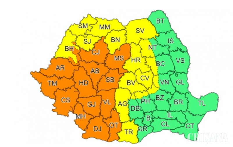 Cod portocaliul de ploi în 14 judeţe