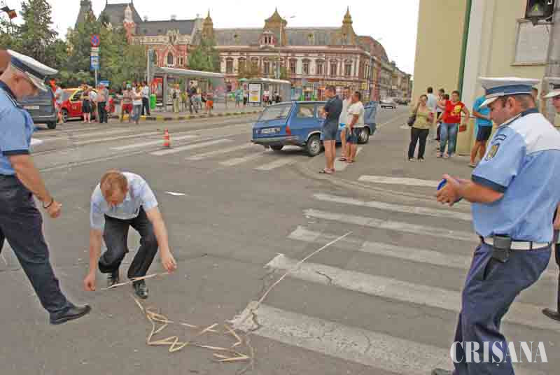 Un autoturism Dacia Break şi un autoturism Logan Break s-au tamponat ieri, în jurul orei 17.00, în centrul oraşului, ambii şoferi susţinând că au trecut pe culoarea verde a semaforului. Din nefericire, în urma accidentului, un pasager din Dacia Break a fost rănit, în timp ce un pieton care se afla pe trecere a fost şi el acroşat. Ambii au fost transportaţi cu ambulanţa la spital. Ghinionist a fost şi şoferul unui taxi, al cărui autoturism a fost avariat de către Logan în timp ce staţiona în staţia de taxiuri. La faţa locului s-au deplasat echipaje ale Serviciului Poliţiei Rutiere, care au efectuat măsurătorile necesare pentru a stabili cine se face vinovat de producerea accidentului. Zeci de trecători curioşi s-au oprit în tot acest timp la locul faptei. Potrivit poliţiştilor, şoferul Daciei Break se îndrepta dinspre Piaţa Ferdinand spre Universitate în timp ce şoferul Daciei Logan rula pe traseul Piaţa Independenţei- strada Primăriei. "ホn urma cercetărilor pe care le vom efectua, vom putea stabili cu exactitate cine se face vinovat de accident. Ambii şoferi ne-au declarat că au trecut pe culoarea verde. ホn urma impactului dintre cele două autoturisme au rezultat două victime. Un pasager aflat în Dacia Break şi un pieton. Nu ştim dacă cel din urmă staţiona pe trecerea de pietoni sau se afla în trecere", ne-a declarat cms. Traian Marnea, din cadrul Serviciului Poliţiei Rutiere. Din fericire, starea de sănătate a victimelor nu este gravă. Potrivit Serviciului de Ambulanţă Bihor, o tânără de 25 de ani a suferit un traumatism cranio-facial minor, în timp ce pietonul, un francez de 20 de ani, a suferit o contuzie la membrul superior, însă a refuzat să fie internat. Conform martorilor, şoferul Daciei Logan avea viteză în momentul producerii impactului. Soţia acestuia s-a arătat indignată de prezenţa jurnaliştilor cărora le-a adresat injurii. Dacia Break a fost avariată destul de serios, având partea stânga faţă complet distrusă şi o roată sărită de la loc. ホn urma testării şoferilor cu aparatul etilotest de către poliţişti, rezultatul a fost 0.