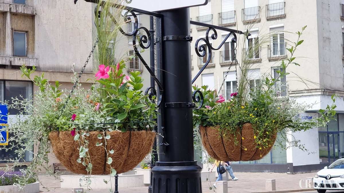 Compoziții florale și ghivece cu flori suspendate în zona centrală - Oradea înflorește