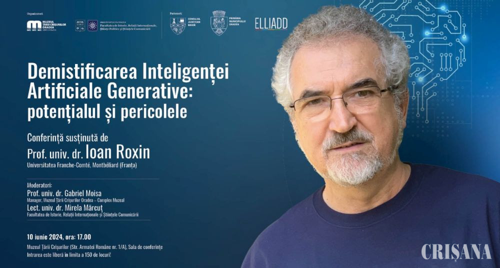 Luni, 10 iunie, de la ora 17.00, la Muzeul Țării Crișurilor, va avea loc conferința „Demistificarea Inteligenței Artificiale (IA) Generative: potențialul și pericolele”.
