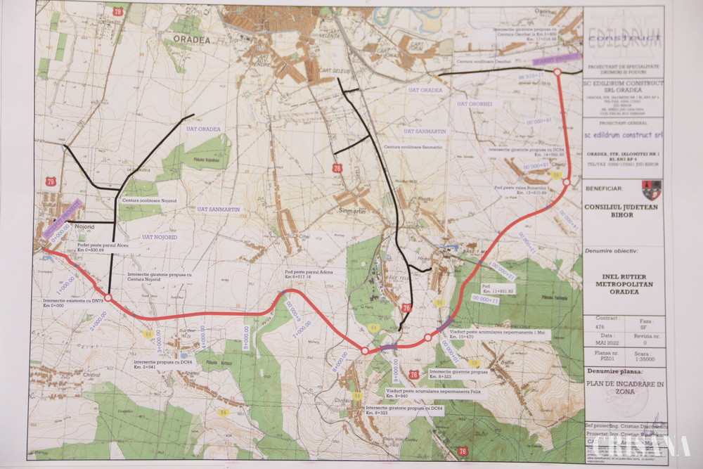 Prin Programul „Anghel Saligny”, proiectul privind construcţia unui inel rutier metropolitan pe o lungime de 17 km are asigurată o finanţare de 201 milioane lei (aproximativ 40 milioane euro). În şedinţa de ieri a CJ Bihor, pe ordinea de zi s-au aflat proiectul privind aprobarea cofinanţării pentru acest drum, precum şi un proiect privind exproprierea a 339.980 metri pătrați de teren pe raza comunelor Nojorid (34.580 mp), Sânmartin (198.545 mp) și Oșorhei (106.855 mp).
