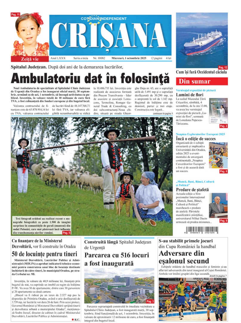 Parcarea supraetajată de pe strada Gheorghe Doja, construită în imediata vecinătate a Spitalului Clinic Județean de Urgență Oradea, a fost inaugurată marţi, 30 septembrie, fiind funcţională de azi, 1 octombrie. Investiția, în valoare de aproximativ 12 milioane de euro, a fost finanţată integral din bugetul local.