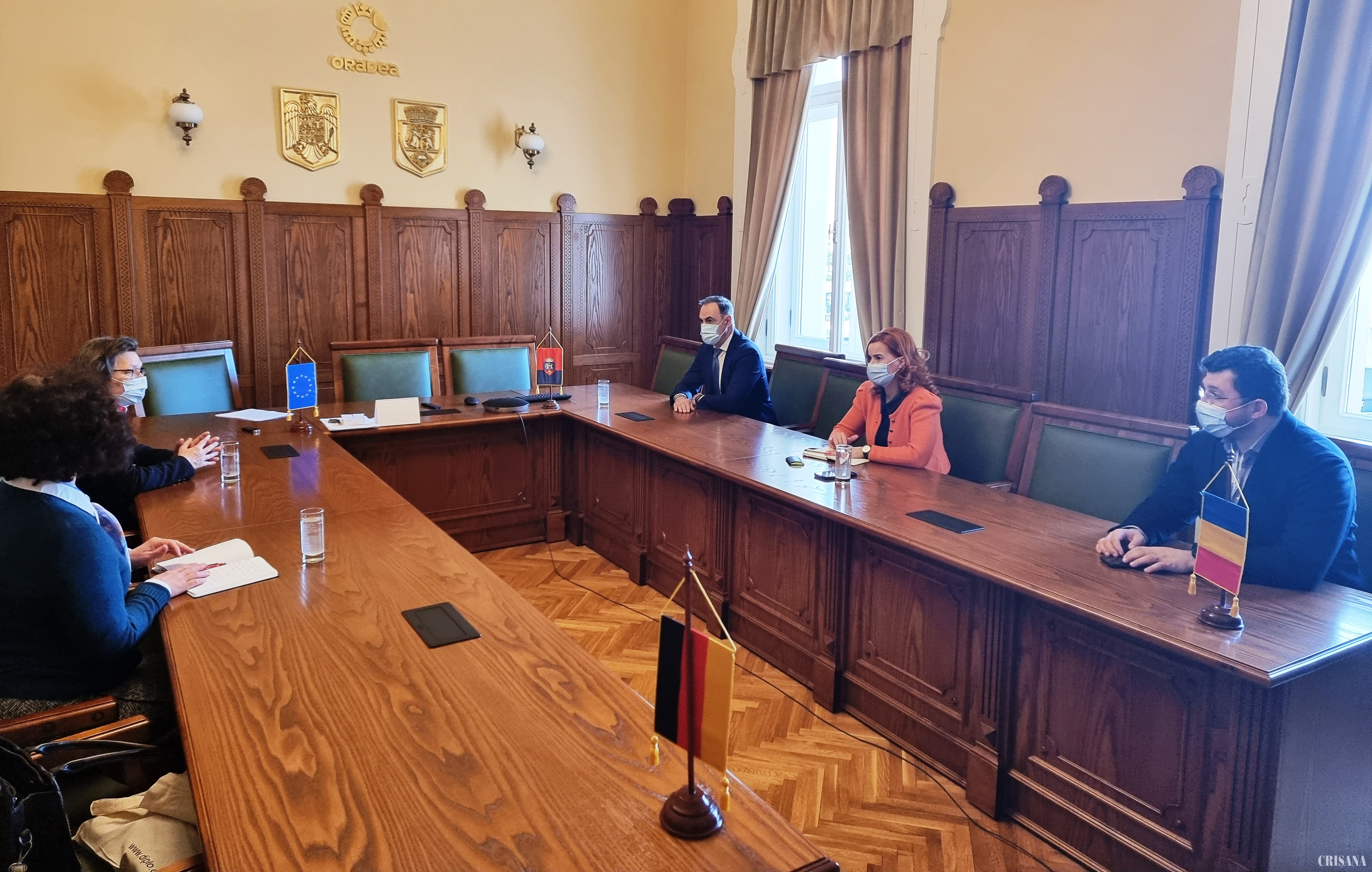 Viceprimarul Arina Moș şi vicepreședintele Consiliului Județean Bihor, Călin Gal, au primit luni, 28 februarie, la Primăria Oradea, vizita consulului german la Timișoara, doamna Regina Lochner.
