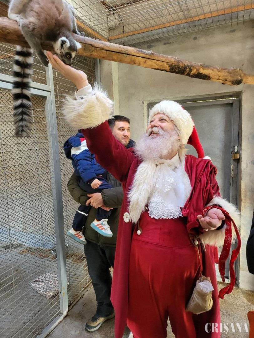 Într-un cadru festiv, animalele au fost răsfățate cu bunătăți primite sub forma unor cadouri frumos împachetate și oferite chiar de Moș Crăciun, ajutat de spiridușii săi. Îndrăgitul personaj nu a venit doar cu sacul plin de cadouri, ci a livrat brazi și flori decorative vizitatorilor mai norocoși.