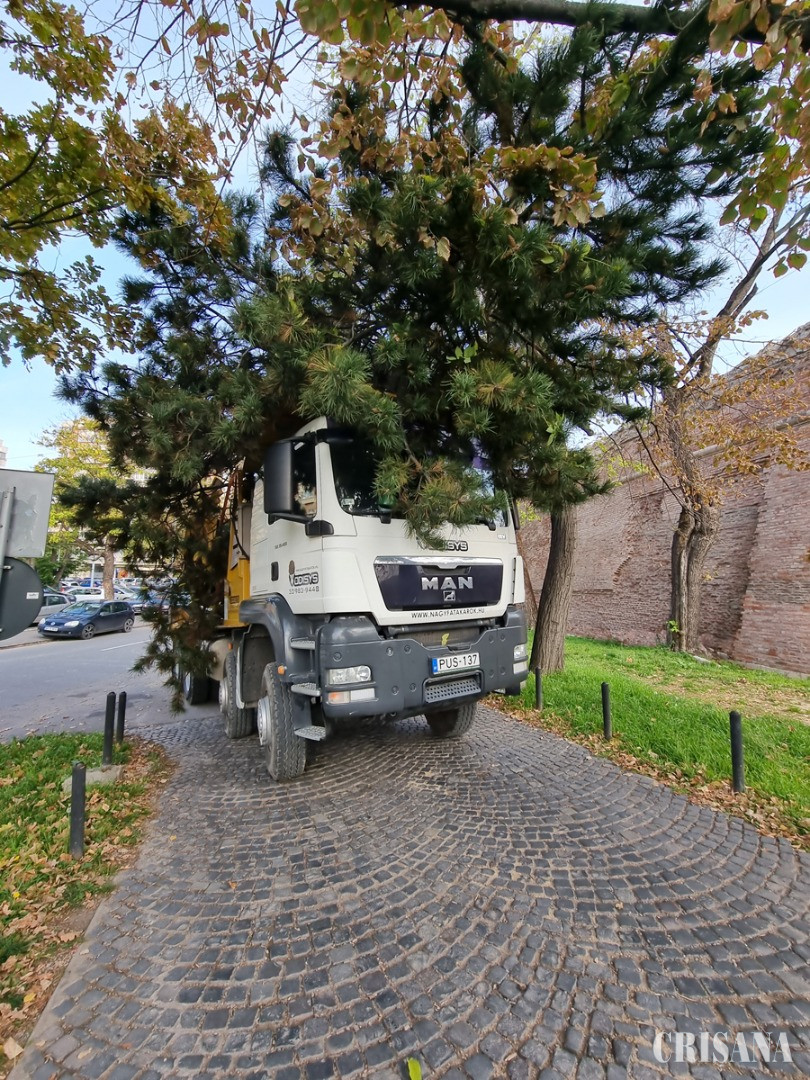 Cu un utilaj adus din Ungaria - Arbori din Centrul Civic, mutaţi în Şanţul Cetăţii