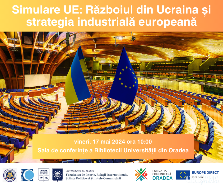 Simularea intitulată „Războiul din Ucraina și consolidarea strategiei industriale europene în domeniul apărării” va oferi publicului participant ocazia de a constata cu propriile simțuri caracteristicile mediului instituțional european. Astfel, cei prezenți vor avea prilejul de a înțelege într-un cadru practic și aplicat care sunt rolurile principalelor instituții ale UE și modul în care acestea colaborează pentru a implementa strategia UE. Evenimentul va avea loc în data de 17 mai, începând cu ora 10.00, în Sala de conferințe a Bibliotecii Universității din Oradea. Persoanele interesate sunt invitate să se înscrie.
