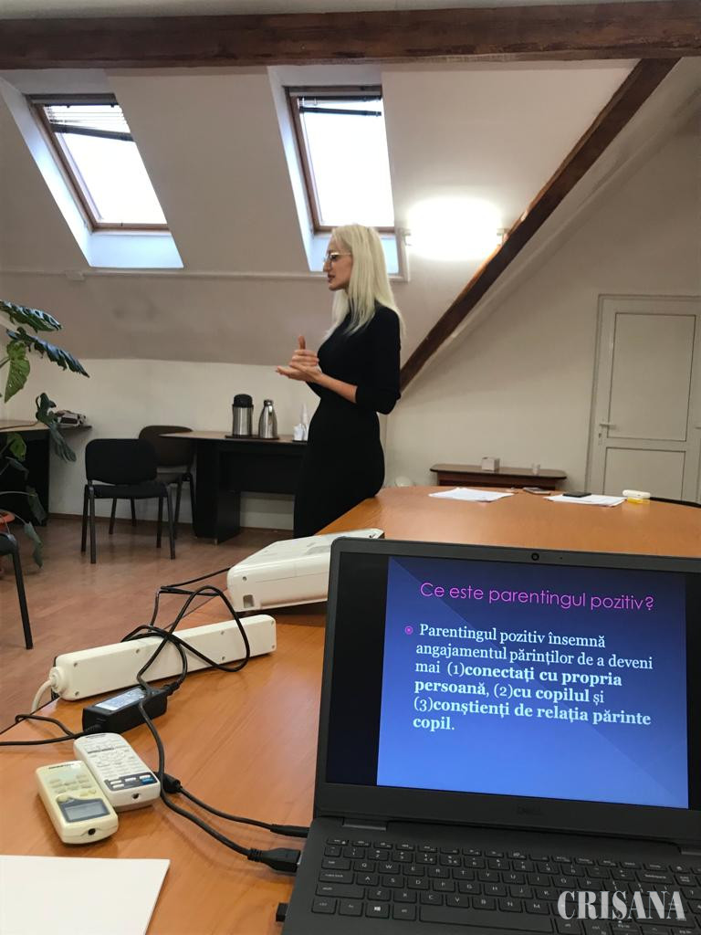 Întâlnirea a fost susținută de Adela Claudia Bradea, psiholog în cadrul Serviciului Protecția Copilului, care le-a exemplificat invitaților stilurile parentale și modul în care acestea oferă diferite avantaje, dezavantaje și consecințe directe asupra copilului, despre stilurile parentale utilizate de către proprii părinți și pe care, în mod inconștient, le folosim în educarea copiilor.