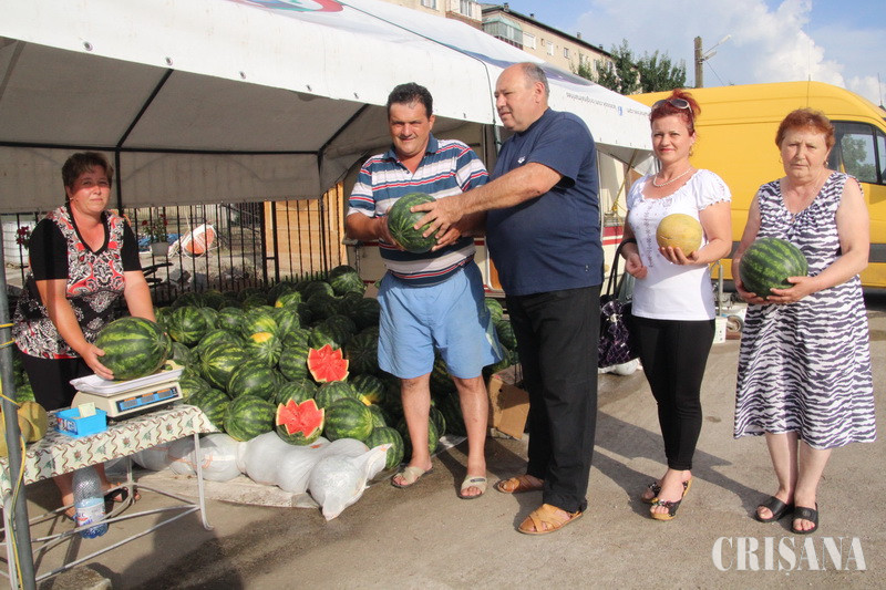 Mai târziu cu câteva zile decât în ceilalţi ani, luni seara sosiră ,,pepenarii” iar marți, în zi de piaţă, şteienii, şi nu numai, au avut din nou plăcerea să-şi umple sacoşele cu renumitele produse olteneşti. Familia lui Stelică Pescaru are acum 17 ani consecutiv de când s-a ,,stabilit” la Ştei, pe timp de vară, însă duce mai departe munca părinţilor, Florea şi Veronica, care vindeau mai demult în piaţa din Beiuş. Familia Pescaru provine din comuna Vrata, judeţul Mehedinţi, cu o populaţie de 2.190 de locuitori, unde au cultivat în acest an pepene verde şi galben pe o suprafaţă arabilă de 3,2 ha. „Sosirăm iar acasă, cum spunem noi când ajungem în fiecare vară la Ştei. Aici avem nenumărați clienți, dar mai ales prieteni care sunt foarte bucuroși de această revedere. Ca de obicei, marfa noastră va fi una de calitate, dar și foarte proaspătă, dorind prin aceasta ca fiecare familie să se bucure de un desert natural, cât mai des cu putință. Indiferent de fluctuația prețurilor de pe piață, noi vom păstra prețurile la fel ca în anii trecuți, atât la pepene verde cât și la pepene galben”, a spus Mariana, într-un mic răgaz, deoarece clienții au format o „coadă” apreciabilă încă de la primele ore ale dimineții. De altfel, cumpărătorii sunt deja familiarizați cu „Prăvălia de oltean/Fără uși și fără geam”, așa cum își clasifică cortul, plin de umor, Stelică, care a mai afirmat: „Sosirăm puțin mai târziu deoarece la noi timpul a fost un pic mai rece, însă de câteva zile se încălzi bine, iar produsele noastre sunt acum deosebit de gustoase. Dacă anul trecut am afirmat că practic am cumpărat apă pentru udat, transportând-o de la mare distanță cu cisternele, acum situația este una mult mai bună. Datorită faptului că am schimbat terenul, pe unul odihnit, (făcând acea rotire obligatorie a suprafaței de cultivat) am și forat un puț de mare adâncime care oferă un debit suficient pentru a iriga întreaga suprafață cultivată. Eu voi face aprovizionarea la Ștei, cu marfă proaspătă, pentru Mariana, în timp ce fiul meu, Mihai, va lucra mai mult pe câmp deoarece acum are suficientă experiență acumulată. Doresc, ca de obicei de altfel, să pot sta cu multă demnitate în fața clienților mei oferindu-le produse naturale de cea mai bună calitate, pentru care pot garanta”. Începe luna lui cuptor, când piața, în fiecare zi de marți și vineri, va abunda prin varietăți multiple de produse agroalimentare la prețuri acceptabile, spre mulțumirea cumpărătorilor, care însă de la „cortul” lui Stelică vor putea cumpăra zilnic cele mai bune produse oltenești. Așadar hărnicia familiei Pescaru este cunoscută, de-a lungul anilor la Ștei, dar mult apreciată în comuna natală unde Stelică a fost răsplătit din nou de localnici, deoarece acesta a fost reconfirmat în funcția de viceprimar al comunei Vrata. ,,Piaţa din Ştei este una renumită prin faptul că preţurile sunt accesibile pentru toate buzunarele, fapt mult apreciat în Depresiunea Beiușului. Sunt mulți producători care vin constant la Ştei, un exemplu semnificativ fiind familia Pescaru, care vine de 17 ani consecutiv. Politica noastră în piaţă, de la care nu ne vom abate, este de a asigura tuturor comercianţilor spaţii adecvate, dar și să respectăm fiecăruia locul lui de vânzare. Prin aceasta dorim să răsplătim așa cum se cuvine fidelitatea lor de a reveni an de an la Ștei, indiferent că sunt bihoreni sau din alte județe”, a spus pentru Crișana, Dorel Lucaciu, administratorul pieței din Ștei.