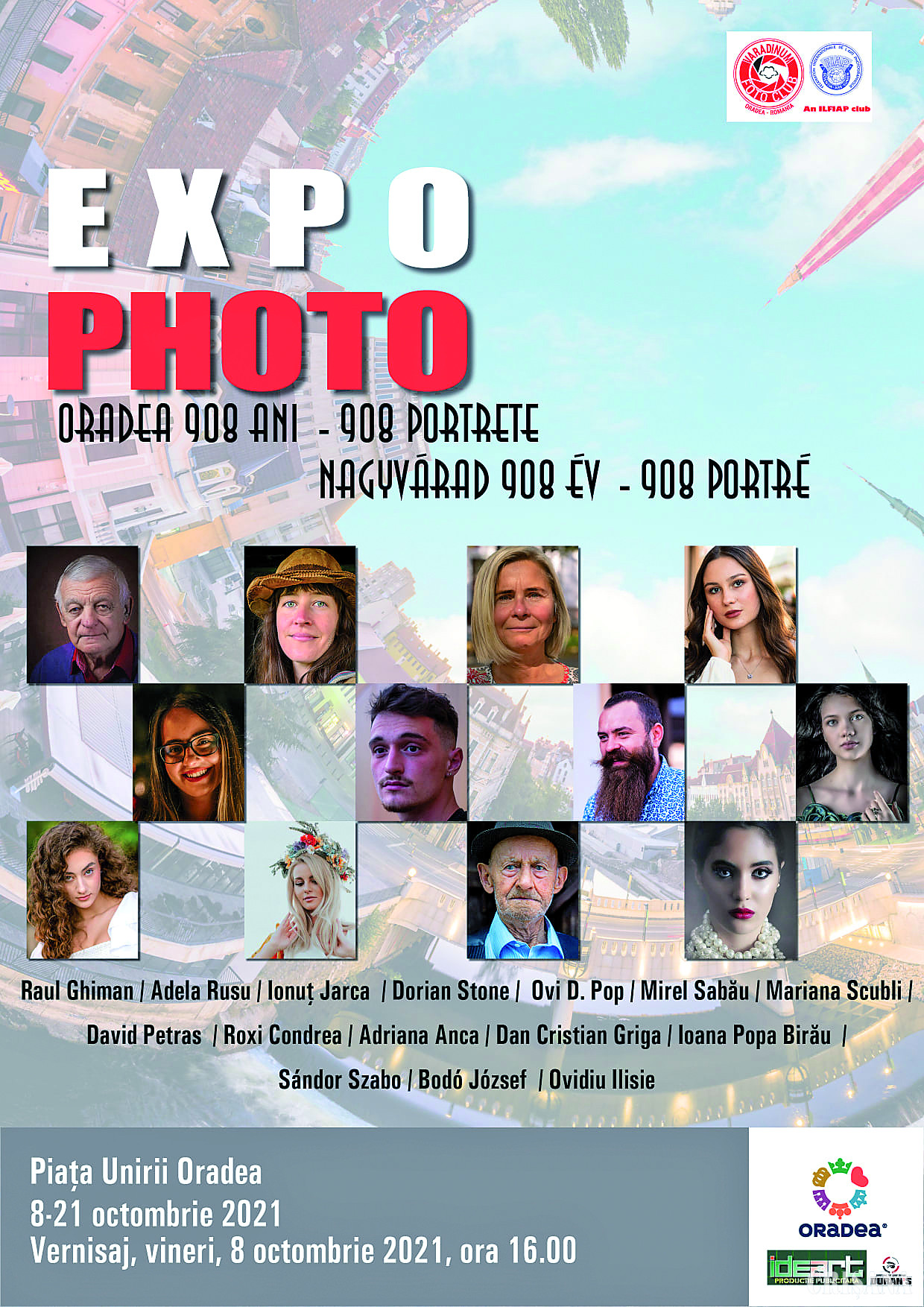 De Ziua oraşului Oradea, Clubul Fotografic Varadinum va expune în Piaţa Unirii o expoziţie intitulată „Oradea 908 ani - 908 portrete”. Expoziţia va fi vernisată astăzi, 8 octombrie, şi va rămâne în Piaţa Unirii până în data de 21 octombrie, inclusiv.