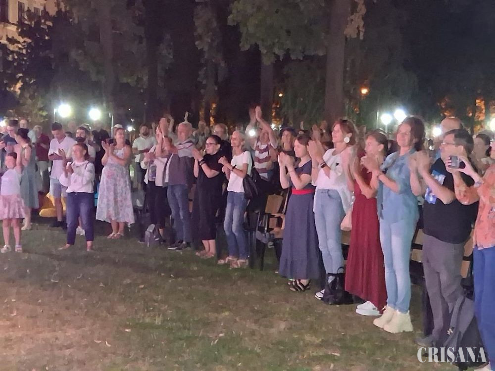 Ce a urmat? Bineînțeles, aplauze și piesa cântată de toți cei prezenți. Trebuie să mărturisesc că am așteptat să vină și rândul cântecului „Focul vânăt e gonit de vânt”, despre care cantautorul a spus că îl cântă mai rar, dar nu poate să nu-l cânte la Oradea, pentru un asemenea public. Iar în semn de omagiu pentru Marius Bațu, cel care, împreună cu Eugen Baboi, a înființat grupul „Poesis”, plecat dintre noi, prematur, în noiembrie anul trecut, a interpretat piesa „Cântec șoptit”, în amintirea vremurilor când împărțeau scena în spectacole, bucurând publicul dornic de melodii cu mesaj profund.