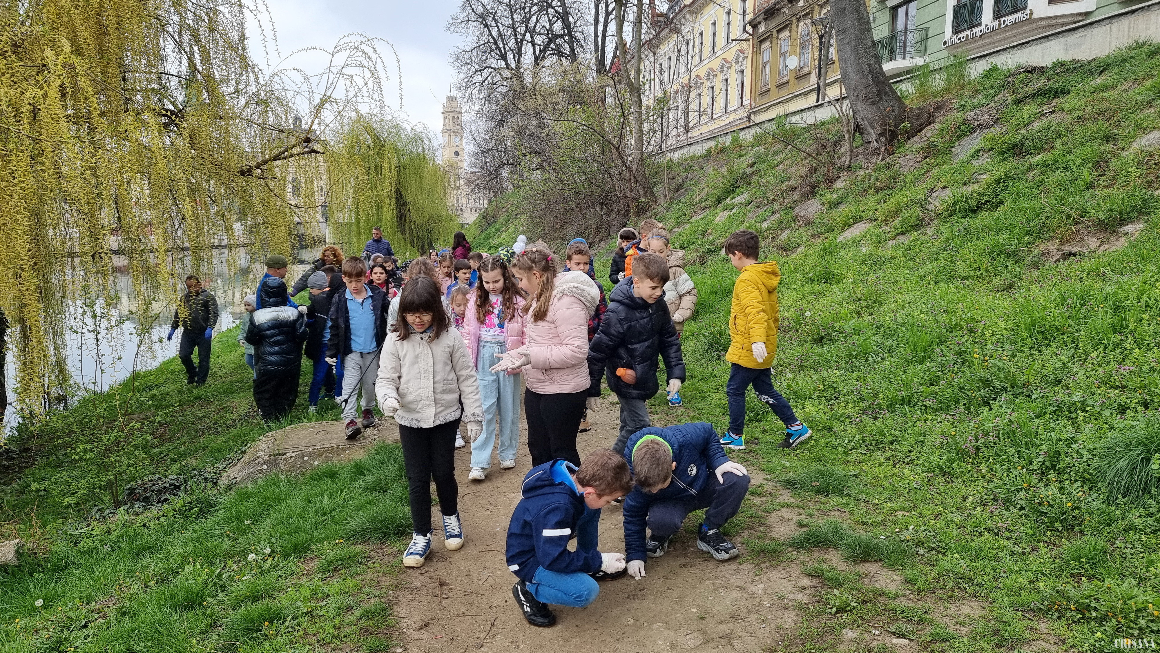 După un scurt instructaj din partea reprezentantului Primăriei Oradea, cei 50 de elevi din clasele I B și I D, însoțiți de cadrele didactice împreună cu reprezentanți ai Asociației Militarilor rezerviști Sfântul Mare Mucenic Gheorghe Purtătorul de Biruință, au parcurs zona verde în amonte de pod, culegând mizeria lăsată.