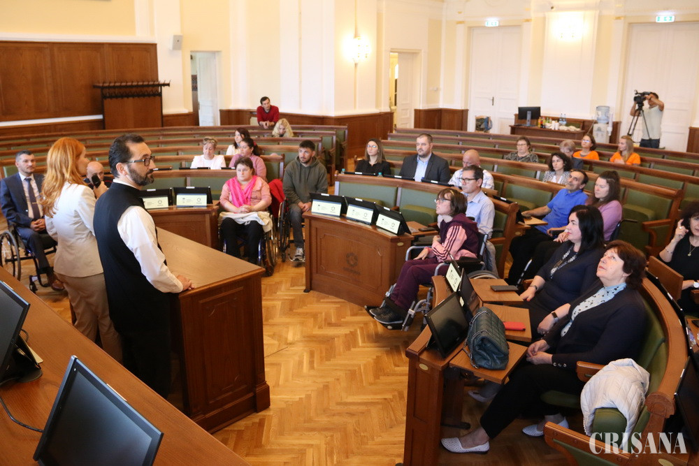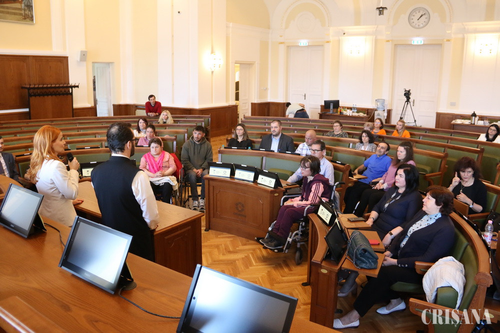 În sala mare a Primăriei Oradea, a avut loc joi, 5 mai, un eveniment de conștientizare publică privind promovarea vieții independente și integrarea persoanelor cu dizabilități din Oradea și Bihor.