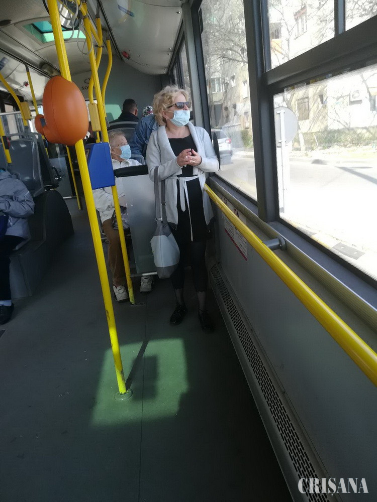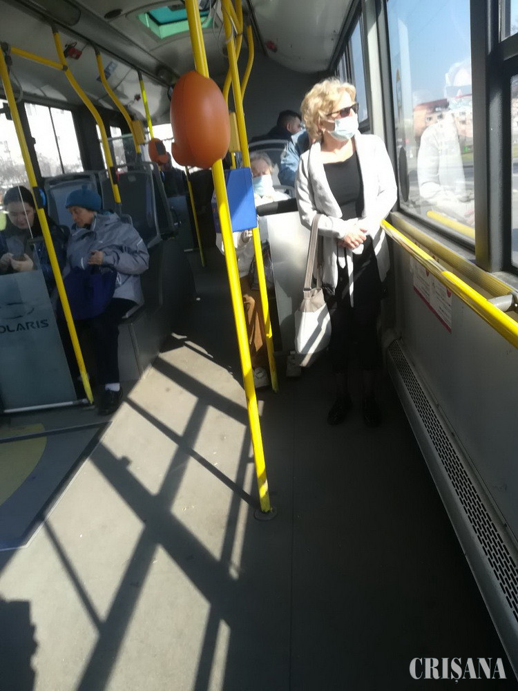 Ieri, în jurul orei 10.30, pe Linia 14 de autobuz, majoritatea călătorilor care aveau drum spre centrul orașului au purtat măști sanitare. În mijloacele de transport în comun este recomandată păstrarea distanței de cel puțin un metru între pasageri, în special când aceștia tușesc, strănută sau au febră, deoarece picăturile de salivă pot transmite virusul de la o distanță apropiată. Așadar, o mare parte din riscul de infecție în mijloacele de transport în comun depinde de cât de aglomerate sunt acestea.