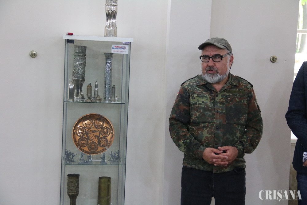 „Această expoziţie se află la a noua prezentare în România, şi, de fiecare dată, a fost îmbogăţită”, a spus colecţionarul Cristian Dumitru. „Este o colecţie pe care am început-o în anul 1991 când, într-un târg de vechituri, am găsit o scrumieră confecţionată dintr-o felie de ţeavă de tun. Apoi am început să descopăr din ce în ce mai multe astfel de obiecte. La ora actuală deţin 500 astfel de obiecte, din care 300 sunt în expoziţia vernisată astăzi la Oradea”, a spus Cristian Dumitru.