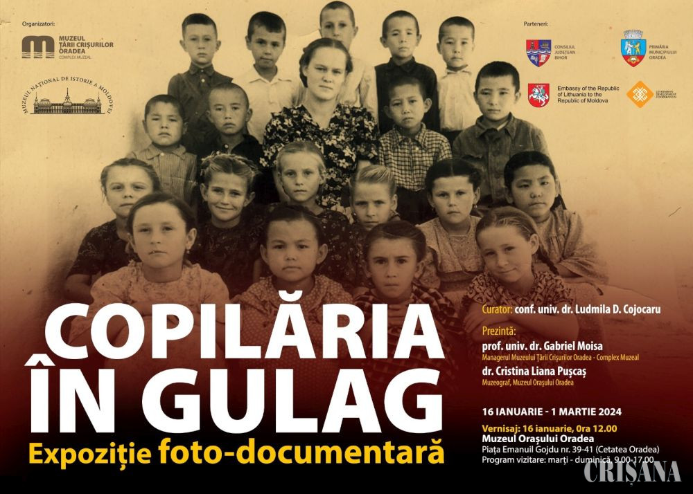 La sediul Muzeului Orașului Oradea (P-ța Emanuil Gojdu nr. 39-41), marți, 16 ianuarie, de la ora 12.00, va avea loc vernisajul expoziției foto-documentare „Copilăria în Gulag”.