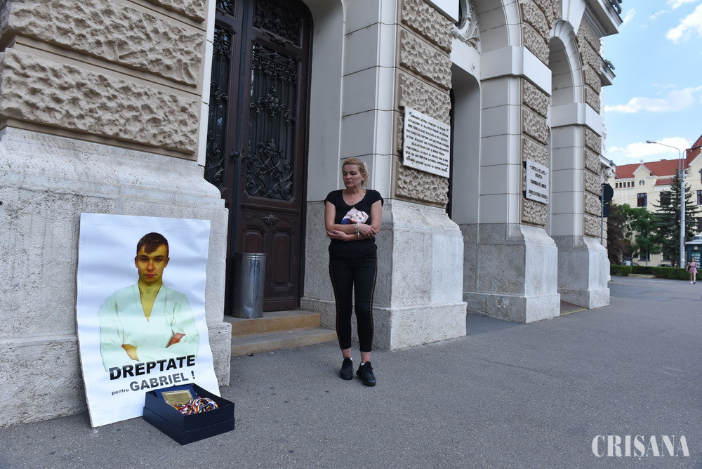 Familia lui Gabriel Cudi şi-a început protestul miercuri dimineaţă. Cei doi părinţi, îmbrăcaţi cu tricouri negre cu chipul băiatului lor, au adus cu ei o pancartă cu portretul lui şi mesajul „Dreptate pentru Gabriel”, alături de o cutie cu medalii şi diplome câştigate la competiţiile de karate. Ei au declarat că se tem că judecătorii vor fi blânzi cu inculpatul, vecinul lor, asta după ce magistraţii au schimbat la termenul precedent încadrarea faptei, din omor în ucidere din culpă. Părinţii tânărului spun că vor rămâne în faţa Palatului de Justiţie până azi, când Curtea de Apel Oradea este aşteptată să pronunţe sentinţa definitivă. Judecătorii Tribunalului Bihor s-au pronunțat în 2 aprilie 2021, în cazul tânărului Gabriel Cudi, ucis cu o motocoasă în Țețchea. Întâmplarea a avut loc în 19 august 2017. Agresiunea a izbucnit după un conflict dintre tatăl vitreg al tânărului, Crăciun Tușe, și Vasile Onița. Cel din urmă tăia iarba din grădina lor cu o motocoasă. Între cei doi a izbucnit o ceartă care a degenerate, iar Gabriel Cudi a intervenit, fiind rănit de Oniţa cu motocoasa care funcţiona. Tânărul a suferit plăgi la nivelul toracelui și la mână. A fost trimis atunci şi elicopterul SMURD, însă, în ciuda efortului medicilor de a-l salva, tânărul de nici 20 de ani s-a stins. Autorul faptei, Vasile Onița Crăciun, a fost trimis în judecată în 2018 şi a fost condamnat anul acesta de instanța de fond la 10 ani de închisoare cu executare pentru omor. Bărbatul a fost obligat și la plata unor despăgubiri materiale și morale în valoare de 18.580 de lei și 100.000 de euro în favoarea mamei, surorii și bunicii victimei. Familia băiatului se teme însă că, după schimbarea încadrării faptei, din omor în ucidere din culpă, agresorul ar putea scăpa cu o pedeapsă de până în cinci ani de închisoare sau chiar să fie condamnat cu suspendare.