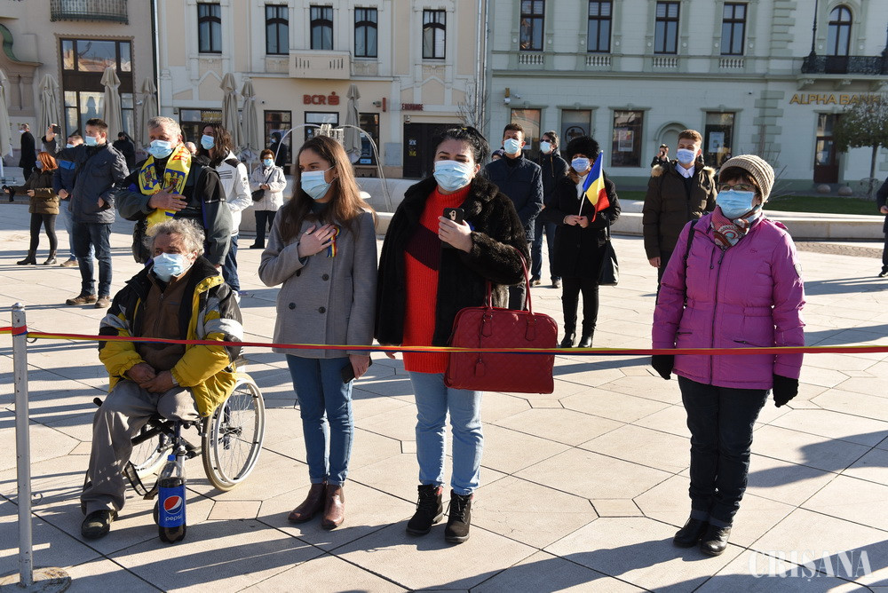 Marţi, 1 Decembrie, aproximativ 300 de orădeni au fost prezenţi la festivităţile organizate în Piaţa Unirii de Prefectura judeţului Bihor. Din pricina pandemiei, anul acesta au lipsit din program festivităţile şi discursurile. De asemenea, s-a renunţat la tradiţionala fasole cu ciolan.