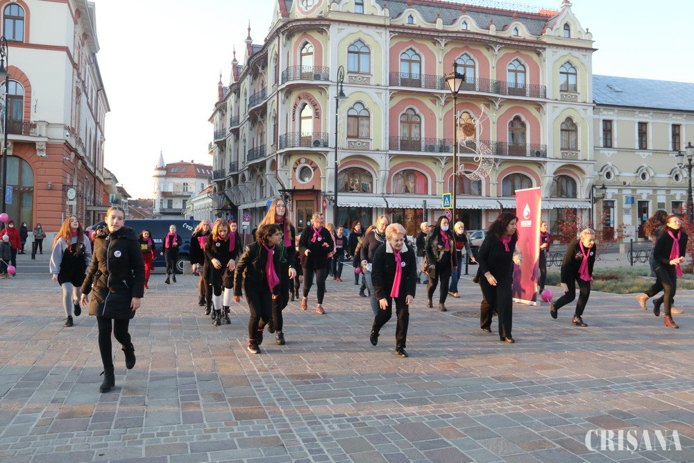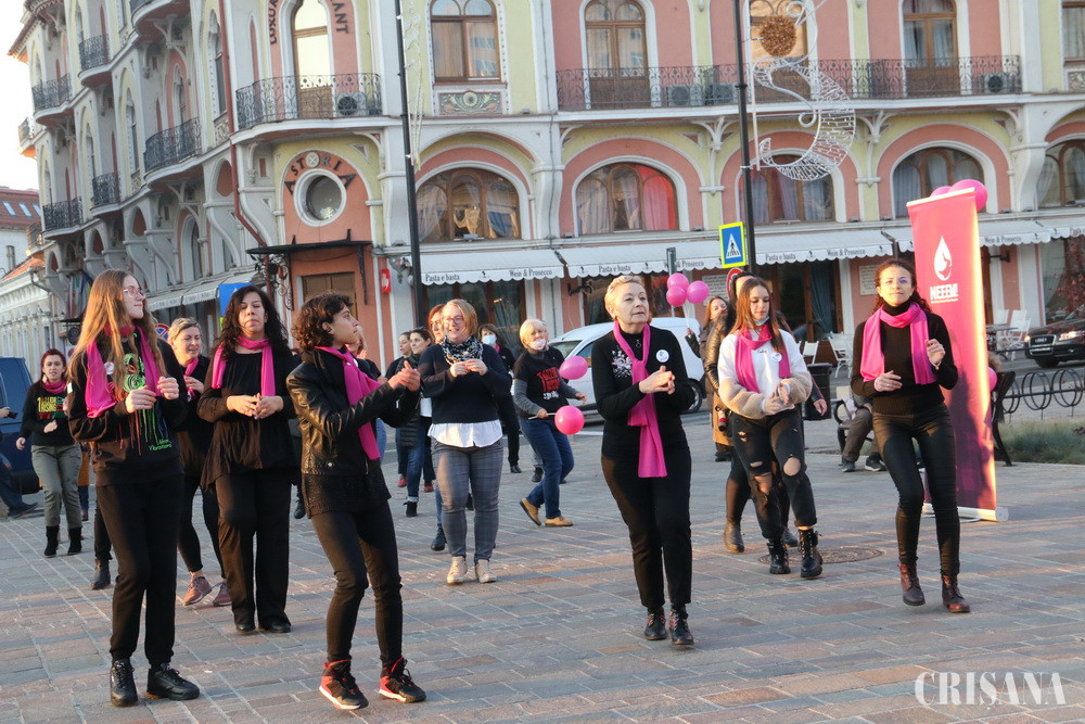 Aproximativ 50 de orădence de diferite vârste au dansat ieri, în Piața Ferdinand din Oradea, pe melodia „Jerusalema”, pentru a marca Ziua internațională pentru eliminarea violenței împotriva femeilor.