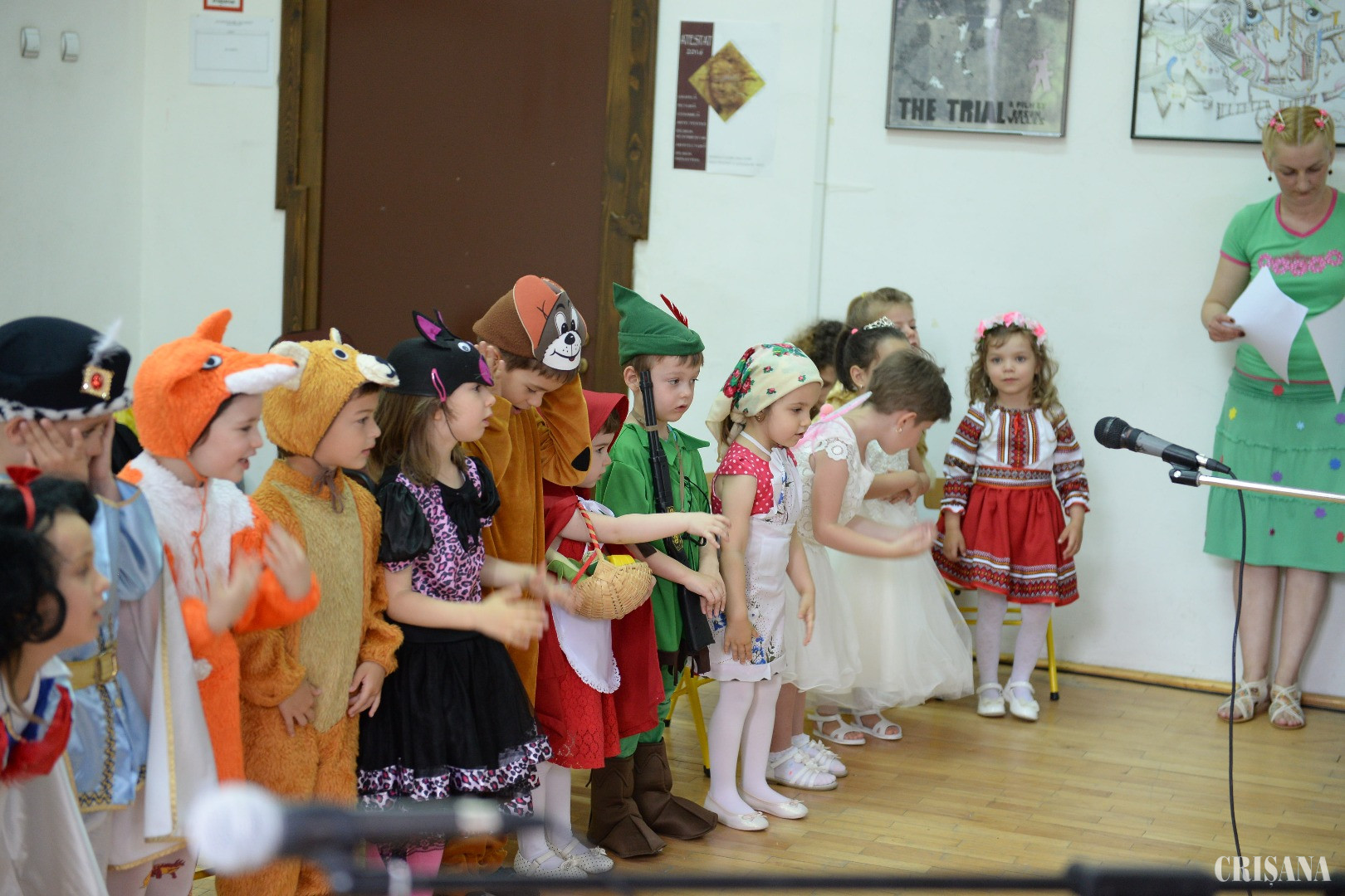 După speech-ul directoarei grădiniţei, Cornelia Borz, a început prima parte a serbării, programul de cântece şi poezii în limba engleză, pregătit de către profesoara acestui opţional, Teodora Pop. Serbarea a continuat cu un Carnaval al personajelor din poveşti, pregătit de către profesoara Camelia Sabău. Pentru carnaval, copiii au îmbrăcat costumaţii diferite, pentru a reprezenta personaje din poveştile copilăriei: „Capra cu trei iezi”, „Scufiţa Roşie”, „Cenuşăreasa”, „Albă ca Zăpada şi cei şapte pitici”, „Ursul păcălit de vulpe”, „Fata Babei și fata Moșului”. Au fost interpretate și cântece învăţate pe parcursul anului şcolar şi care au răsunat frumos în acompaniamentul muzical asigurat de către negativele de pe casetofon. Serbarea a continuat cu un program de dansuri, pregătit de către profesorul acestui opţional, Claudiu Miclău.