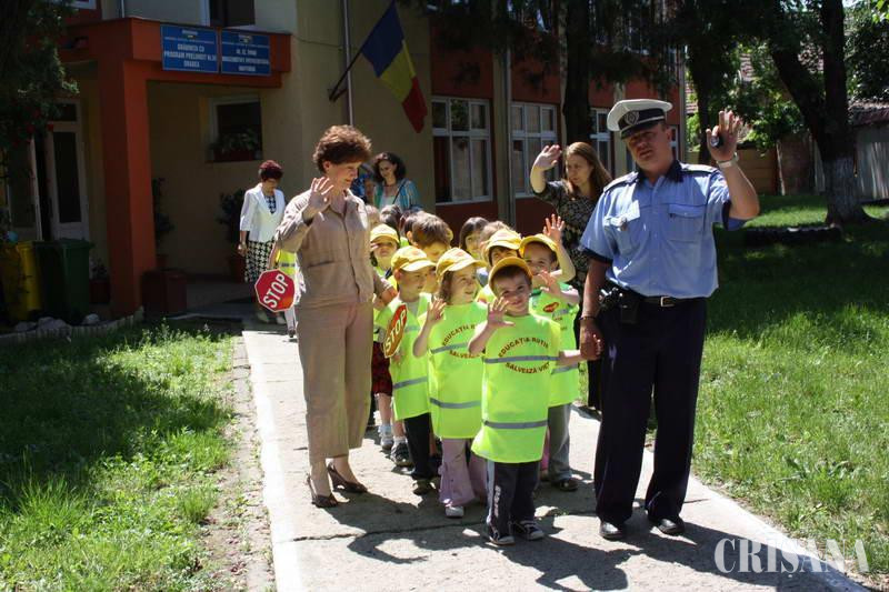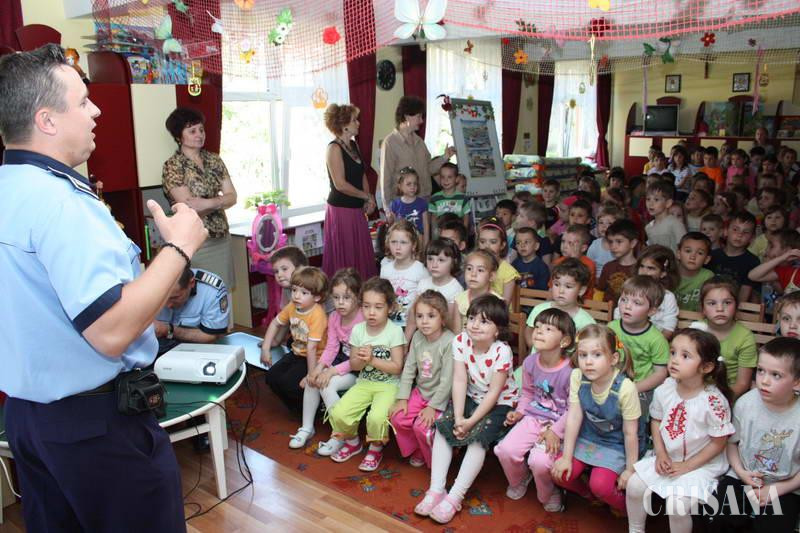 Preşcolarii au îmbrăcat veste reflectorizante, au vizionat alături de poliţişti un filmuleţ, au luat parte la jocuri interactive, învăţând semnificaţia indicatoarelor de circulaţie şi văzând cum arată şi cu ce este dotat un autoturism de poliţie. "Educaţia rutieră se regăseşte în curricula şcolară, iar activitatea desfăşurată la grădiniţa noastră reprezintă evaluarea proiectului local "Să circulăm corect". La eveniment asistă grupele mijlocii, mari şi pregătitoare atât de la secţia română, cât şi de la secţia maghiară", a precizat director Lucia Negrău. Astfel de activităţi educativ-preventive sunt derulate cu regularitate de către poliţiştii de proximitate tocmai pentru a reduce cât mai mult victimizarea copiilor. Oamenii legii susţin că în majoritatea cazurilor cei mici sunt mult mai receptivi la astfel de mesaje decât adolescenţii sau chiar părinţii.