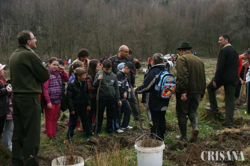 La orele dimineţii, pădurea din Hidişel s-a umplut de "furnicuţe" înarmate cu sape şi hârleţe. Primul care a ajuns la faţa locului a fost un grup de elevi din clasele a VIII-a B, a IX-a A şi a IX-a B de la Liceul Teoretic "Lucian Blaga" coordonaţi de profesoarele de biologie Felicia Şchiop şi Nicoleta Maghiar şi de profesoara de matematică Delia Iova. Alături de ei au venit şi reprezentanţi din clasele a IX-a, a X-a şi a XI-a de la Grupul Şcolar "Dimitrie Leonida", coordonaţi de profesoara de matematică Mihaela Băguţ şi profesoara de informatică Patricia Faur. Coordonatoarea proiectului Eco Şcoala de la Liceul Teoretic "Lucian Blaga", Felicia Şchiop, împreună cu coordonatoarea proiectului "Hand in hand for the Enviroment Protection", din cadrul programului Comenius, Mihaela Băguţ, de la Grupul Şcolar "Dimitrie Leonida", au dat curs, cu bucurie, invitaţiei Direcţiei Silvice Bihor de a planta goruni, ambele echipaje sosind la faţa locului cu acelaşi autocar. În cadrul aceluiaşi program, Eco Şcoala, învăţătoarele Eva Olău, Domnica Popa şi Tereza Ilisei, de la Şcoala nr. 11 din Oradea, au sosit cu un alt autocar, plin cu elevi ai claselor I şi a IV-a, dornici de a "salva planeta". Astfel, cu mic cu mare, echipajele tuturor şcolilor implicate în acţiunea de plantare s-au deplasat pe jos prin pădure până la parcela 68E - Poiana Vânătorilor, ce aştepta să fie împădurită. Este vorba de o parcelă de 2,1 hectare, care, sub atenta îndrumare a reprezentantului cu împădurirea din cadrul Direcţiei Silvice Bihor, ing. Mircea Faur, a fost ieri împădurită cu goruni. Acesta le-a explicat elevilor importanţa împăduririi, le-a prezentat schema de împădurire, cât de aproape să planteze arborii unul de altul pentru dezvoltarea lor armonioasă şi de durată. Şi, unde-s mulţi, puterea creşte... La acţiune au mai sosit, între timp, şi micuţii grupei mijlocii de la Grădiniţa nr. 27 din Oradea, împreună cu doamna educatoare Mariana Paşcalău, care ne-a declarat că este cel de-al cincilea an consecutiv când participă la astfel de acţiuni. De asemenea, au mai sosit înarmaţi cu hârleţe şi elevii clasei a III-a B ai Liceului "Iosif Vulcan" împreună cu învăţătoarea Aurelia Susan. Gorunii au fost puşi la dispoziţia participanţilor la acţiune de către Ocolul Silvic Oradea, reprezentat de către ing. Mariana Maior. Activitatea de plantare s-a desfăşurat în voie bună, elevii diferitelor şcoli demostrând că pot lucra bine împreună, având un scop comun: să facă ce le stă în putinţă pentru salvarea pădurilor, plămânii planetei noastre. Pe această cale, elevii şi cadrele didactice implicate în acţiune doresc să mulţumească Direcţiei Silvice Bihor pentru ocazia oferită şi speră că vor fi invitaţi la cât mai multe acţiuni de acest gen. De menţionat este faptul că anul 2011 a fost declarat de către Adunarea Generală a ONU anul internaţional al pădurilor. Titulatura este folosită pentru a atrage atenţia asupra modalităţilor în care poate fi îmbunătăţită starea de sănătate a zonelor împădurite care acoperă 31% din suprafaţa uscată a Planetei.
