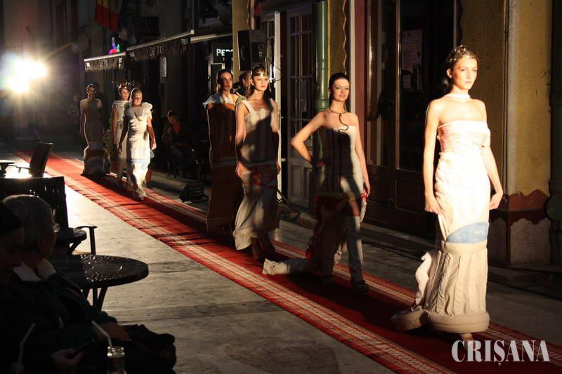 În cadrul Festivalului de Teatru Scurt, care se derulează în aceste zile la Oradea, Asociaţia D'Art a prezentat aseară, sub Pasajul Vulturul Negru, primul dintre cele două spectacole de modă organizate sub genericul "Moda pe scurt", din cadrul proiectului "Spectacol de stradă".