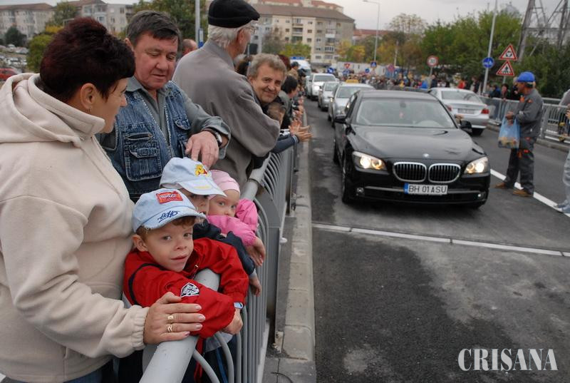 Podul peste Crişul Repede pe relaţia Oneştilor - Sovata - Fagului - Carpaţi - Dacia a fost inaugurat ieri, cu prilejul Zilei Oraşului. Noul pod este iluminat, are o lungime de 108 metri, două benzi de circulaţie pe carosabil şi trotuar pe fiecare parte, pasaje pietonale pe sub pod şi piste pentru biciclete. Totodată, pe ambele maluri au fost amenajate două giraţii care vor face legătura cu podul, respectiv pe strada Sovata - Fagului şi Splaiul Crişanei - Oneştilor. Deschiderea circulaţiei pietonale pe pod s-a făcut în jurul orei 14.00, când în zonă, o armată de muncitori montau dalele în noile sensuri giratorii, lucrau la scările de acces şi la amenajările adiacente. De asemenea, trotuarele nu au fost finalizate în totalitate, dar nici mâna curentă de la pod nu a fost încă montată în întregime. "Până la sfârşitul lunii se vor finaliza racordurile cu terenurile din zona Novaeuro şi Splaiul Crişanei, va fi curăţată albia Crişului, vor fi refăcute digurile, rigolele pluviale. Totodată, pe mal vor fi plantaţi 50 de arbori, va fi înierbat taluzul, iar parapeţii podului vor fi vopsiţi", ne-a precizat Alexandru Achim, managerul de proiect. Spre seară, în jurul orei 18.00, după ce echipele de muncitori au fost retrase de pe şantier, s-a dat drumul circulaţiei şi pentru şoferi. Momentul, care nu s-a dovedit unul festiv, a beneficiat şi de prezenţa reprezentanţilor Primăriei Oradea. Zeci de orădeni au venit să asiste la acest eveniment, copiii şi şoferii fiind recompensaţi cu suveniruri. Prima maşină care a trecut noul pod, avea la bord o fetiţă care tocmai ieri a împlinit 9 ani. Mai mult, micuţa Victoria S. a trecut în ultima vreme printr-o perioadă grea din punct de vedere al sănătăţii.