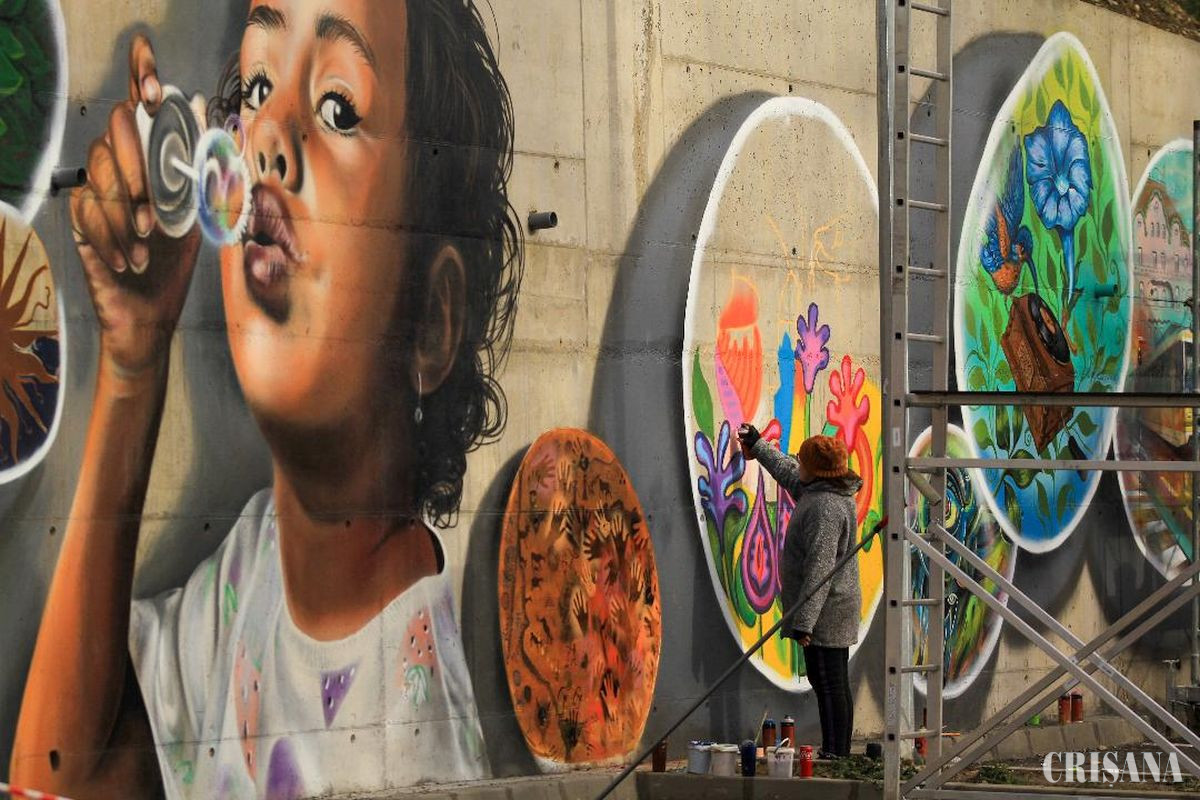 sesiunea de bugetare participativă 2023. Artiștii implicați în proiect vor susține un workshop de graffiti & street art (adulți și copii) unde doritorii se vor putea familiariza cu tainele artei stradale (cromatică, materiale utilizate, concept, tematică). Proiectul a fost gândit nu doar ca o pictură stradală care înfrumusețează o zonă ternă și plictisitoare, ci mai ales ca un liant între artist/comunitate, comunitate reprezentată de toate vârstele prin implicarea membrilor în mod direct. Aceasta a fost încurajată să-și aducă aportul prin prefigurarea universului propriu în anumite bule. Fiecărei bule de săpun îi corespunde povestea sa imaginară sau chiar reală. În unele s-au folosit, ca inspirație, animale de companie reale, iar cei trei copii care apar concret nu sunt produsul imaginației, ei sunt membri ai familiilor artiștilor. Lumi