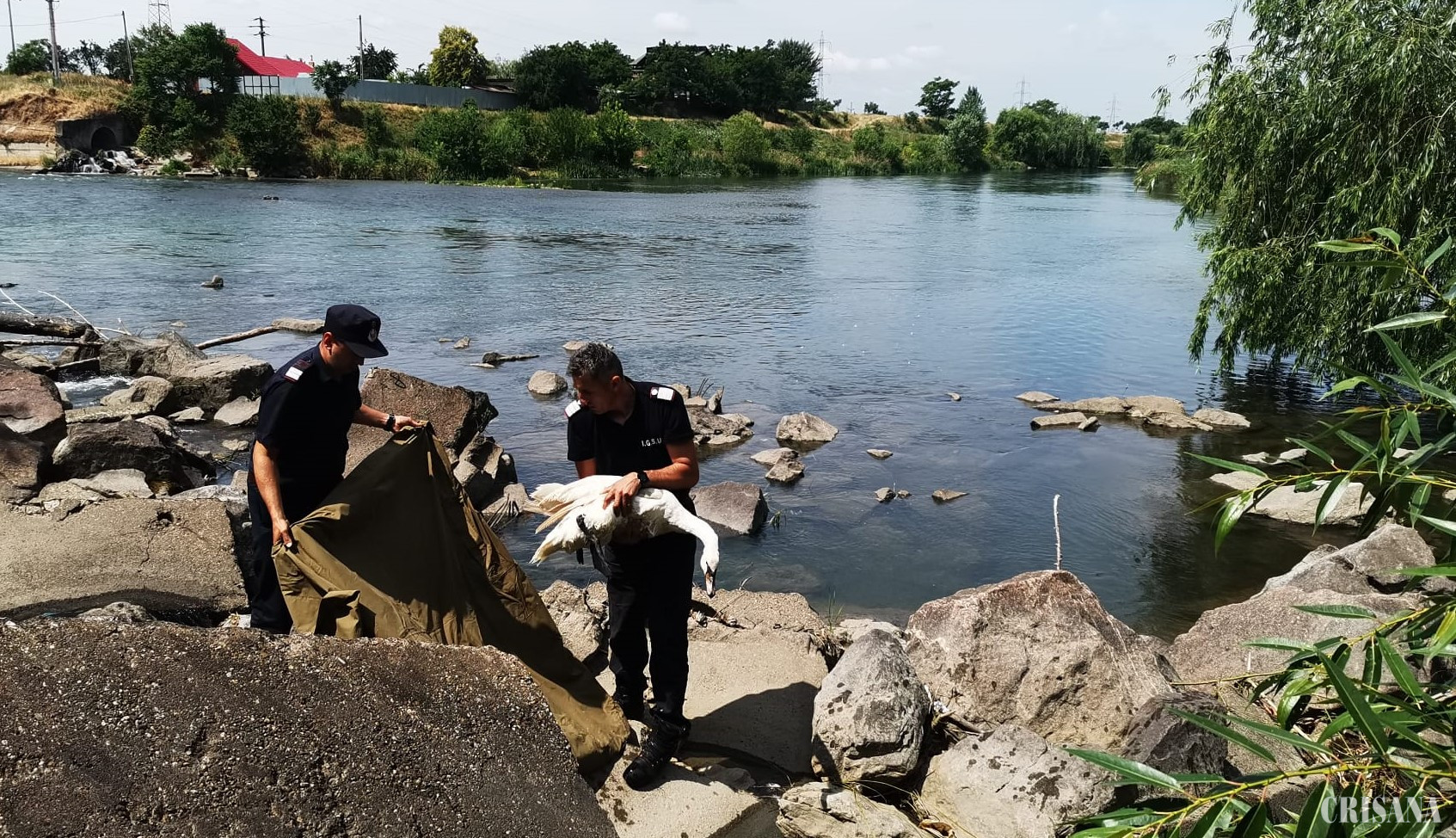 Azi, în jurul orei 11.55, un orădean a apelat numărul telefonului fix al Inspectoratului pentru Situații de Urgență “Crișana” sesizând faptul că un prieten de-al său, aflat la cumpărături la un supermarket situat pe strada Calea Borșului din Oradea, a observat o lebădă rănită, în spatele magazinului respectiv. Pentru salvarea păsării, au fost mobilizați pompierii Detașamentului 2 Oradea, care, ajunși la locul intervenției, au constatat că lebăda rănită era prinsă între blocurile de piatră de pe malul Crișului Repede, fiind în imposibilitatea de a zbura sau a se mișca. Pompierii militari au scos-o cu grijă dintre blocurile de piatră și au predat-o pentru îngrijiri de specialitate, unui reprezentant al Direcției Sanitare Veterinare şi pentru Siguranţa Alimentelor Bihor, sosit ulterior la fața locului.