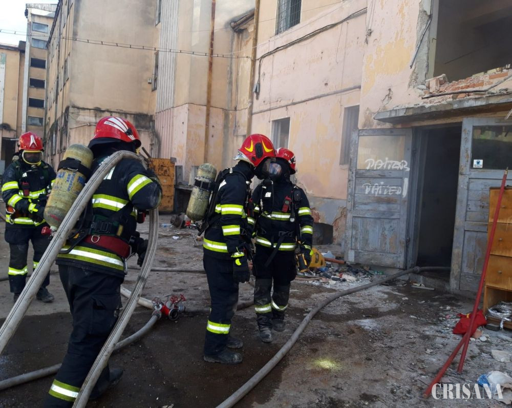 Incendiu la o clădire în care se aflau butelii cu oxigen și acetilenă - Misiune periculoasă a pompierilor orădeni