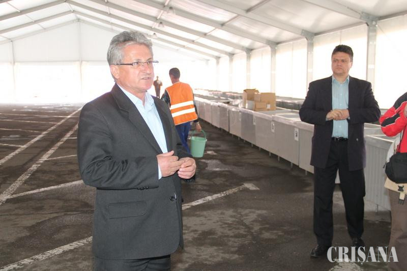 Directorul ADP Oradea, Liviu Andrica, a prezentat ieri cortul în care vor fi mutaţi comercianţii de legume-fructe şi lactate din Piaţa Rogerius până la finalizarea lucrărilor de modernizare a noii pieţe. Cortul, montat în parcarea din faţa Spitalului Municipal "Dr. Gavril Curteanu", este confecţionat din structură uşoară şi are o suprafaţă de 1.200 mp. Andrica a menţionat că vor fi 370 de mese disponibile în cort pentru legume şi fructe şi 10 vitrine frigorifice destinate comercianţilor de lactate. Pentru că numărul meselor disponibile în cort este mai mic decât cel existent în actualul amplasament (370 faţă de aproximativ 550), ADP Oradea a stabilit criterii de atribuire. Astfel, deţinătorii a una sau două mese vor primi o masă în cort, deţinătorii a 3 - 4 mese vor primi două mese, iar deţinătorii a 5 - 6 mese vor primi trei mese. Numerotarea meselor şi aşezarea lor în ordine va începe dispre staţia de tramvai înspre Spitalul Municipal. "Fiecare comerciant din sectorul de lactate va primi câte o jumătate de vitrină frigorifică. De asemenea, până în data de 10 aprilie, vom achiziţiona o extensie a acestui cort, pentru a amenaja un spaţiu adecvat pentru comercianţii de flori, înspre staţia de tramvai", a menţionat şeful ADP Oradea, care a precizat că oamenii care vând în Piaţa Rogerius au fost înţelegători cu privire la mutarea în cort. Ba mai mult, susţine Andrica, chiar ei au venit cu propunerea privind modul de repartizare a meselor. Liviu Andrica a declarat că mutarea comercianţilor va începe duminică după-amiază, astfel încât, de la 1 aprilie, să poată să-şi desfăşoare activitatea. Valoarea cortului demontabil din aluminu este de 65.000 de euro fără TVA, iar valoarea extinderii acestuia este de 13.000 de euro, fără TVA. Potrivit şefului ADP Oradea, după finalizarea lucrărilor de modernizare şi mutarea comercianţilor în noua Piaţă, cortul va putea fi folosit pentru organizarea de evenimente.