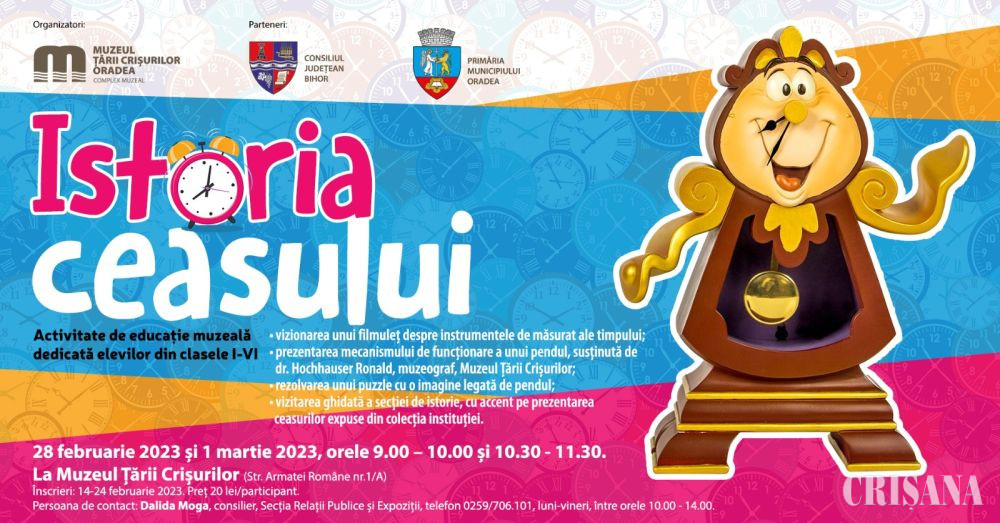 În preajma Mărţişorului se va organiza la Muzeul Ţăriii Crişurilor o activitate de educație muzeală având titlul „Istoria ceasului”. Aceasta este dedicată elevilor din clasele I-VI.
