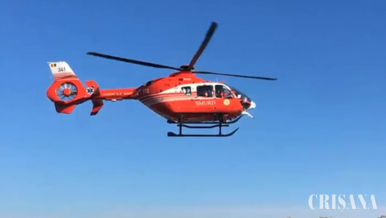 Intervenția elicopterului SMURD pentru salvarea victimelor - Accident cu patru victime în Curtuișeni
